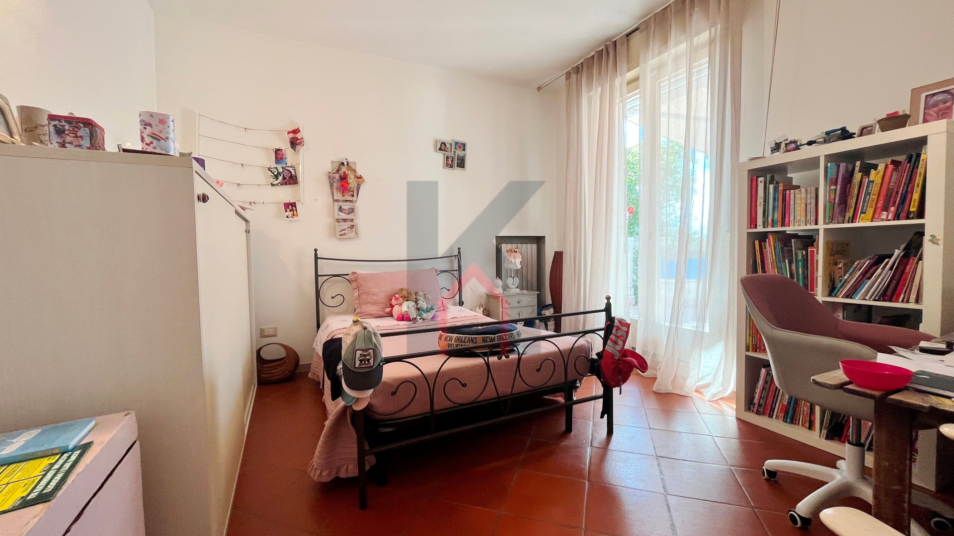 ampio ingresso con guardaroba, cucina abitabile, salone di 40 mq con camino, studio di 14 mq attualmente adibito come terza camera da letto,