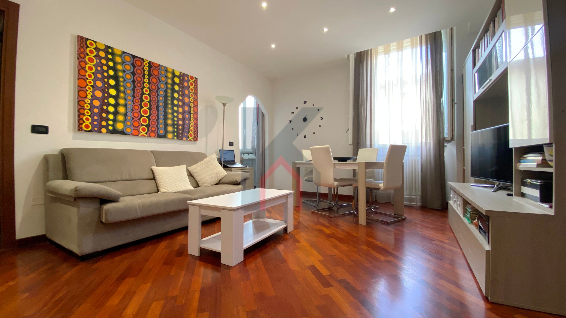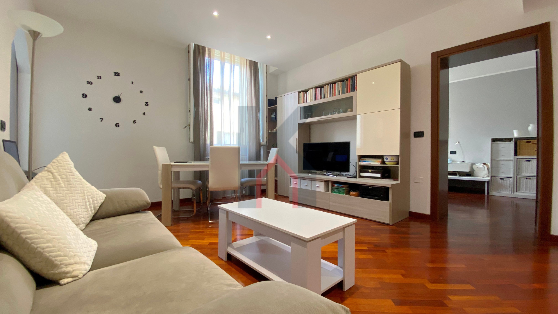 Centro storico _ In palazzina signorile e già completamente ristrutturata, appartamento in perfette condizioni al piano primo rialzato disposto su unico livello con cantina al piano semi-interrato. soluzione di circa 55 mq calpestabili e composto da ampio soggiorno - pranzo, cucina separata, comodo disimpegno con zona lavanderia a scomparsa, bagno grande con ventilazione forzata e comodo box doccia walk-in (realizzato in opera con piletta centrale in alluminio), ampia camera da letto matrimoniale con cabina armadio. la palazzina storica è stata rifatta completamente a fine anni 90, internamente invece il bagno è stato rifatto nel 2018 (sia la parte idraulica che rivestimenti e sanitari), infissi in pvc di ultima generazione con vetrocamera, portoncino blindato ed impianti completamente autonomi. parquet posa diagonale su tutta la superficie, gres effetto pietra nel bagno ed illuminazione a faretti in controsoffitto. soluzione ottimale sia come abitazione principale sia come investimento. posizione silenziosa comoda per tutti i servizi