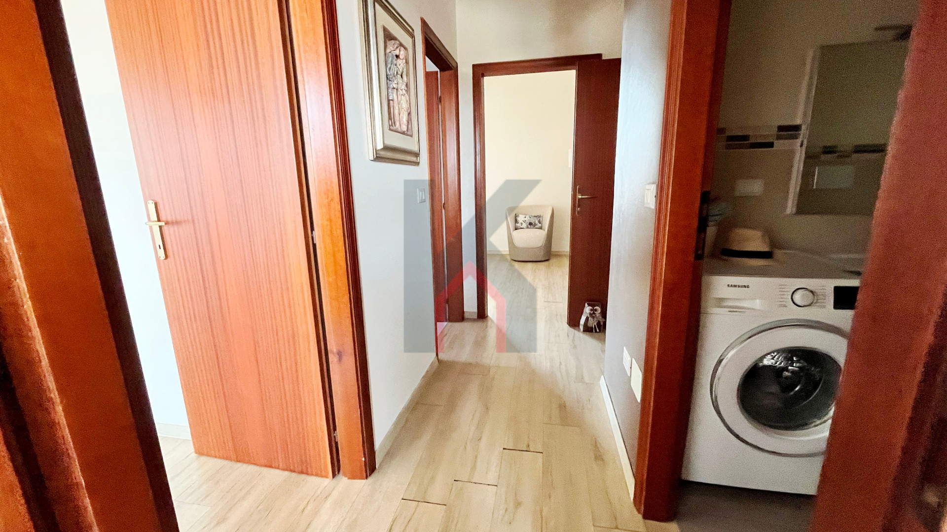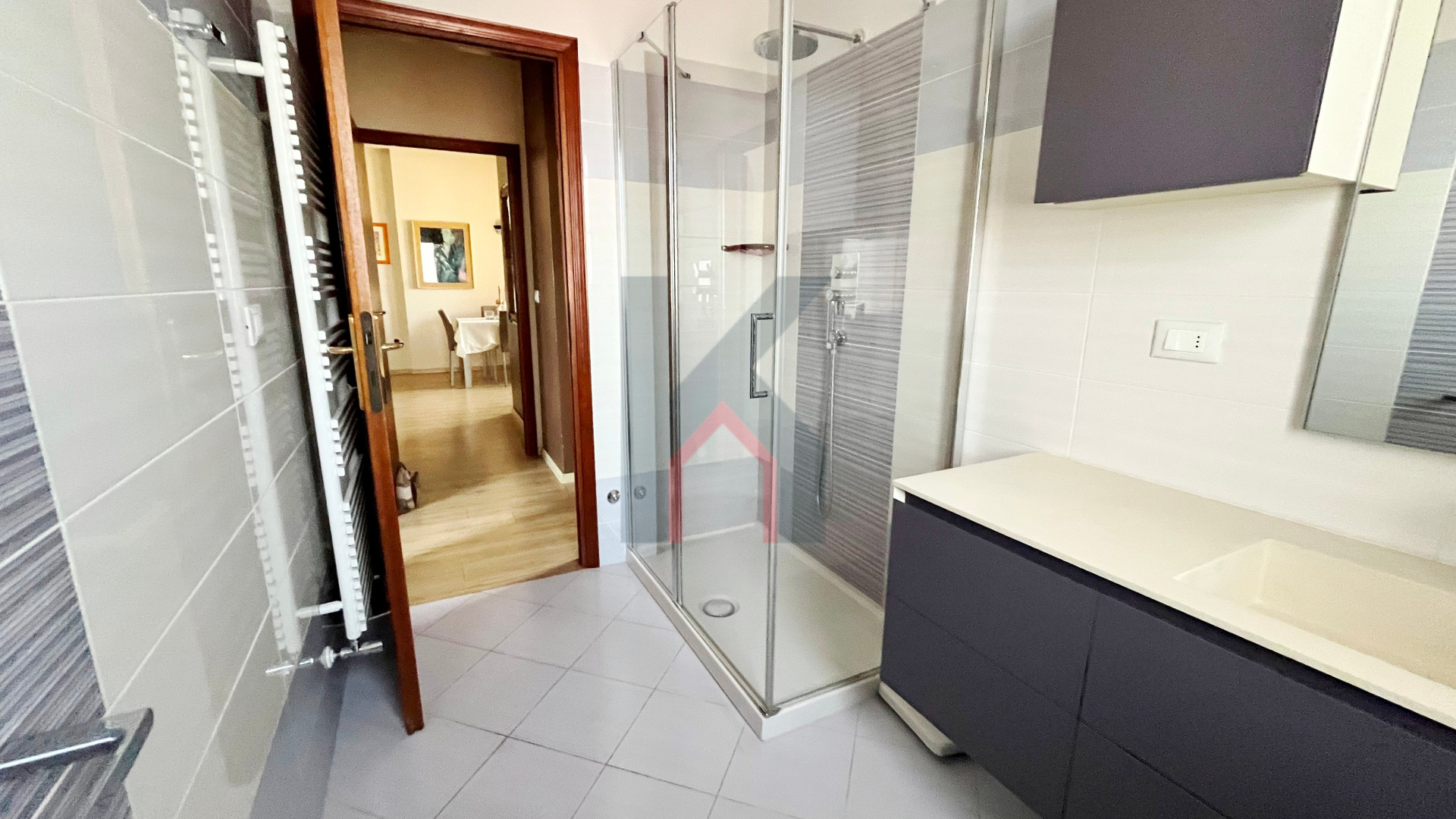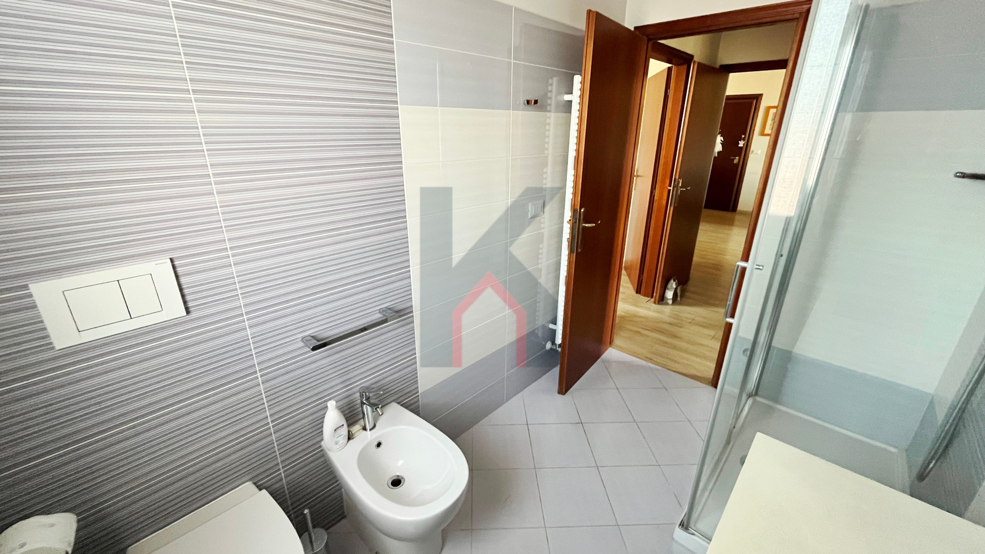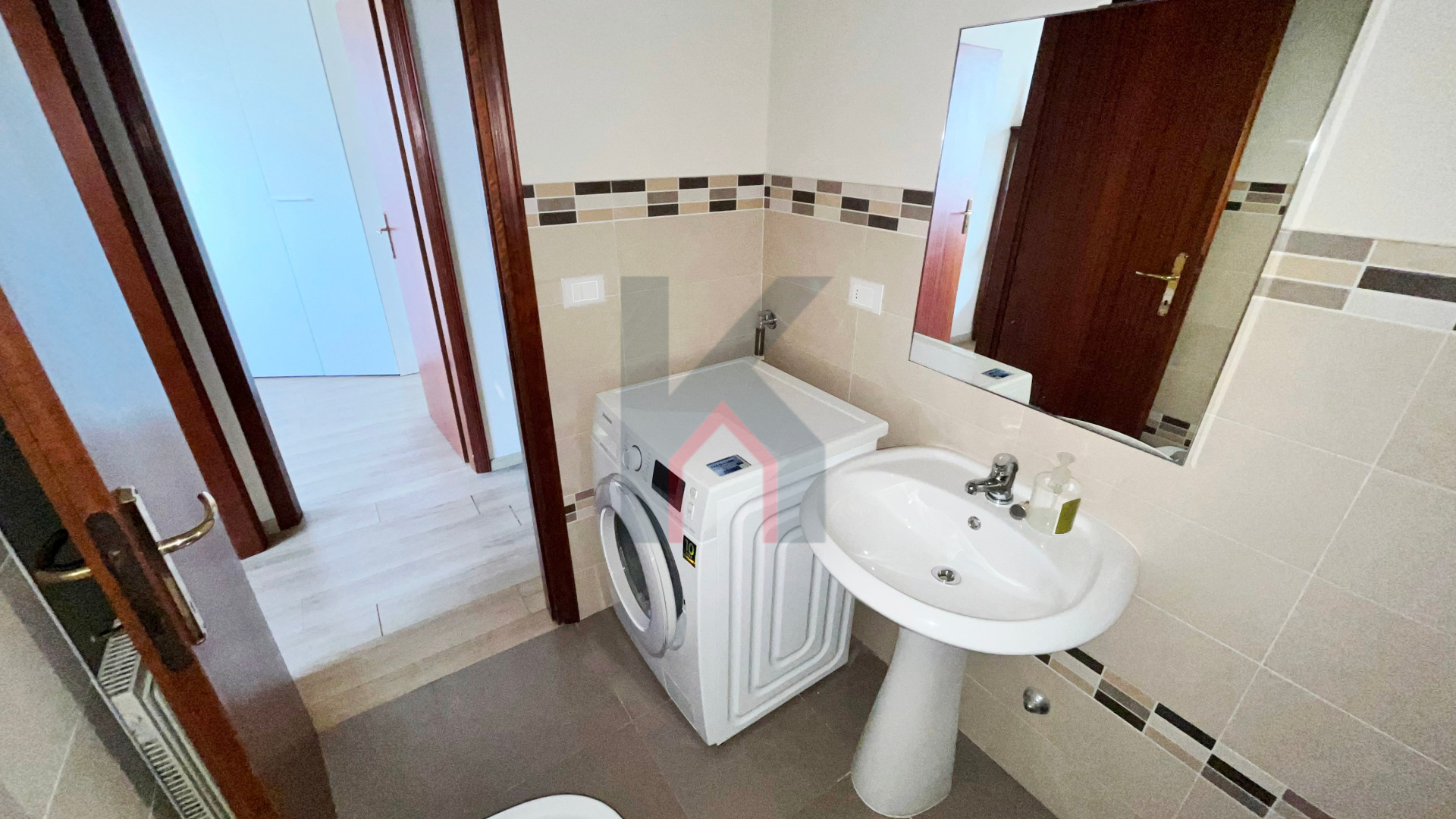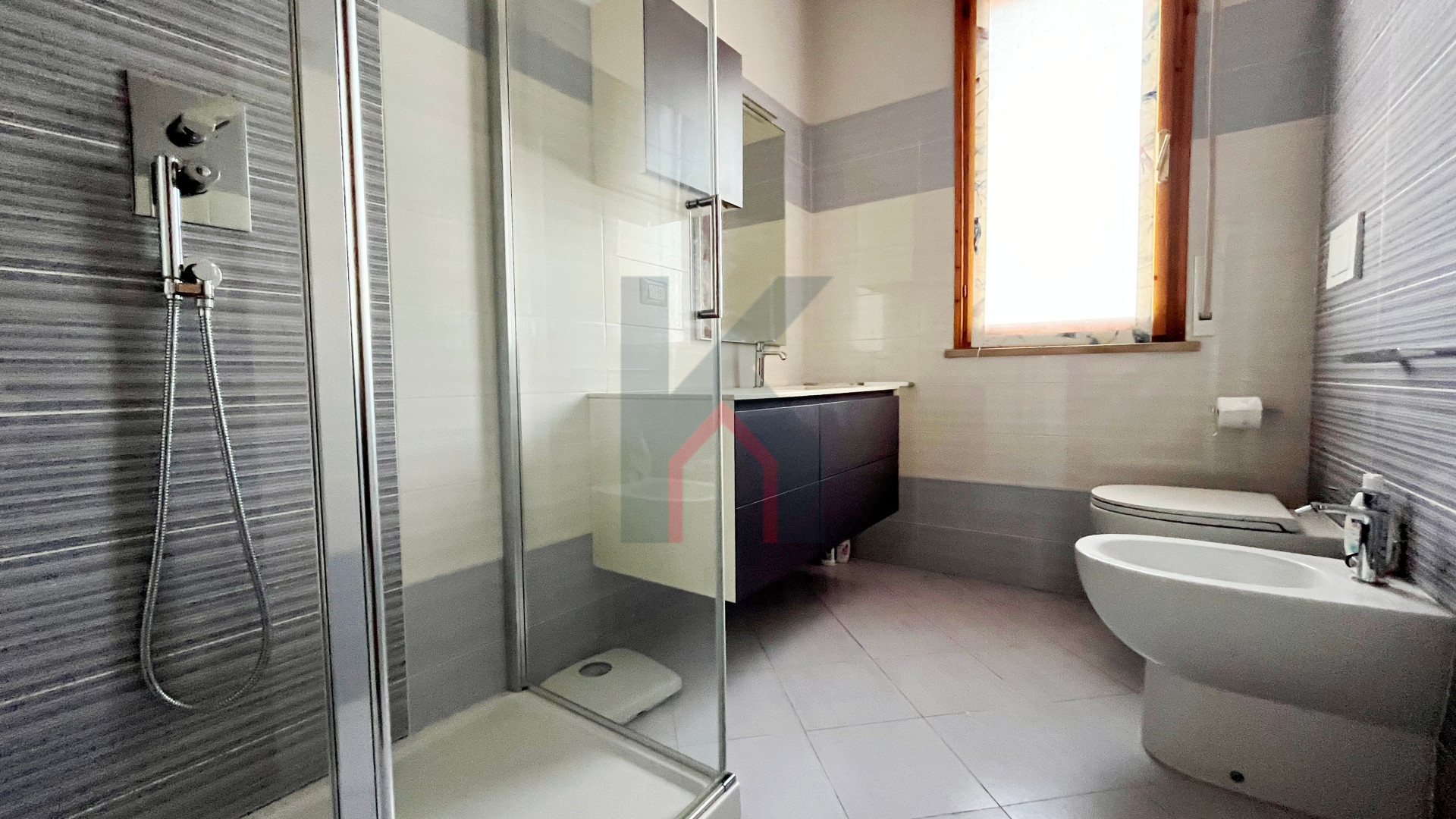 disimpegno notte, bagno finestrato con box doccia, secondo bagno con aspirazione forzata e attacchi per la lavatrice,