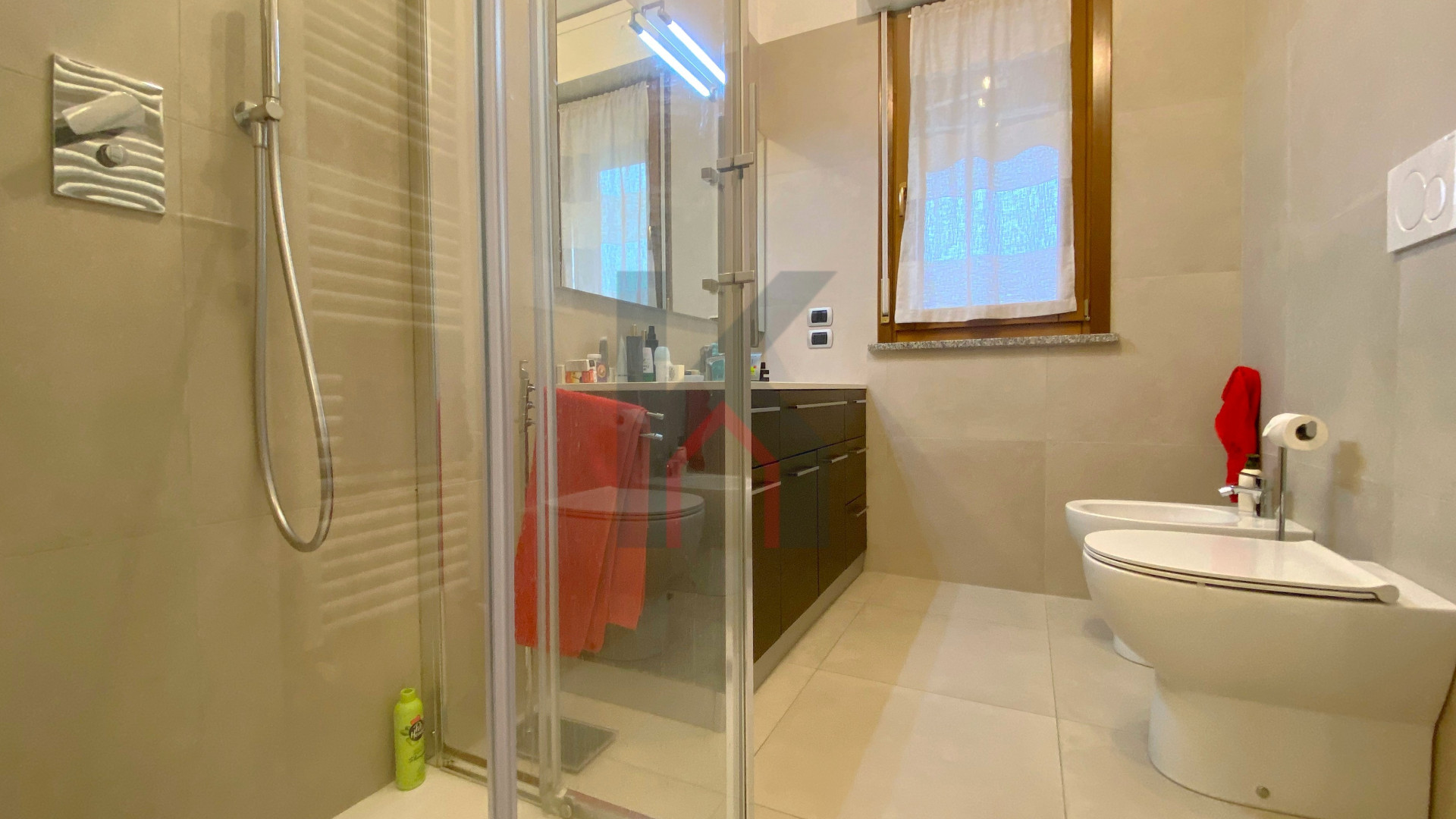 bagno finestrato con box doccia, camera da letto matrimoniale con accesso al balcone attualmente adibita a cucina abitabile.