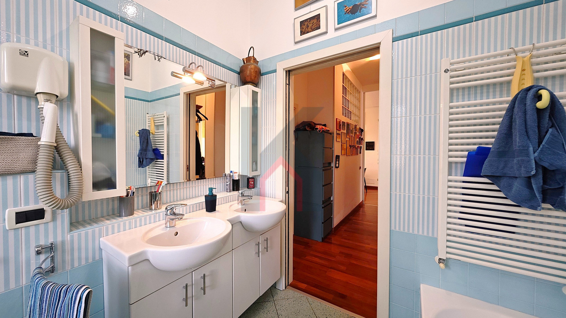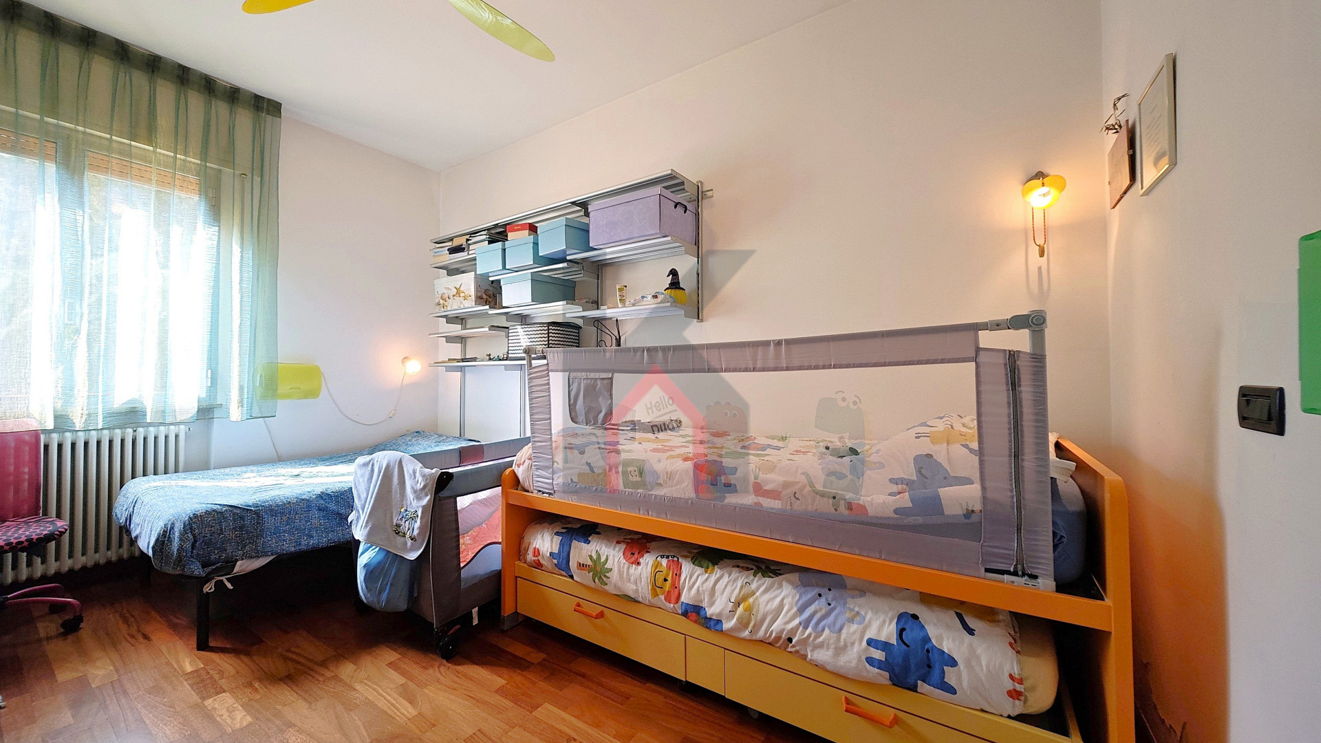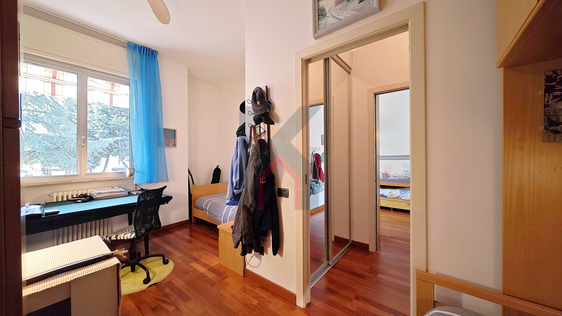 Dal disimpegno possiamo raggiugere la zona notte dove troviamo due camere da letto da 12 e quasi 14 mq, bagno finestrato con vasca, box doccia e doppio lavandino ed infine la camera da letto principale di oltre 14 mq dotata di cabina armadio e secondo bagno in camera con box doccia e ventilazione forzata.
