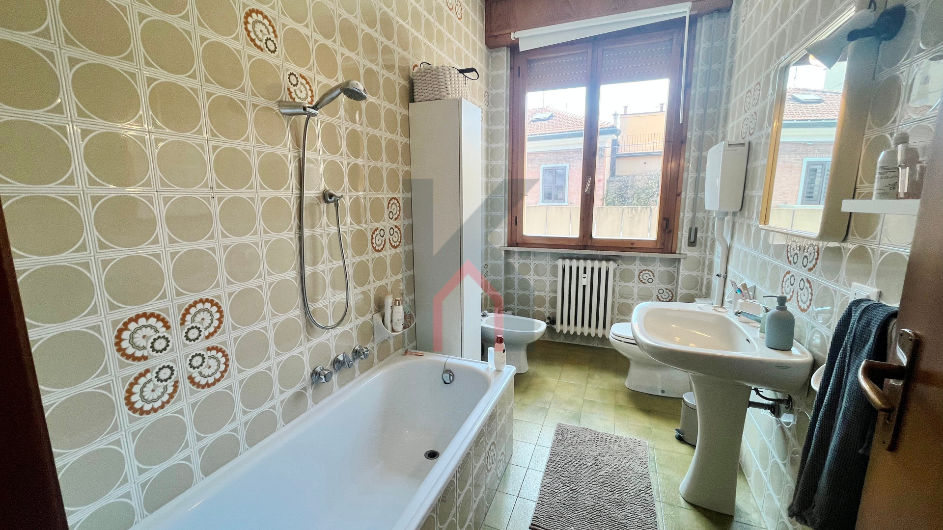 bagno finestrato con vasca e doccia, secondo bagno con aspirazione forzata e box doccia, due camere da letto di cui un'ampia matrimoniale di 19 mq e la singola di 10 mq,