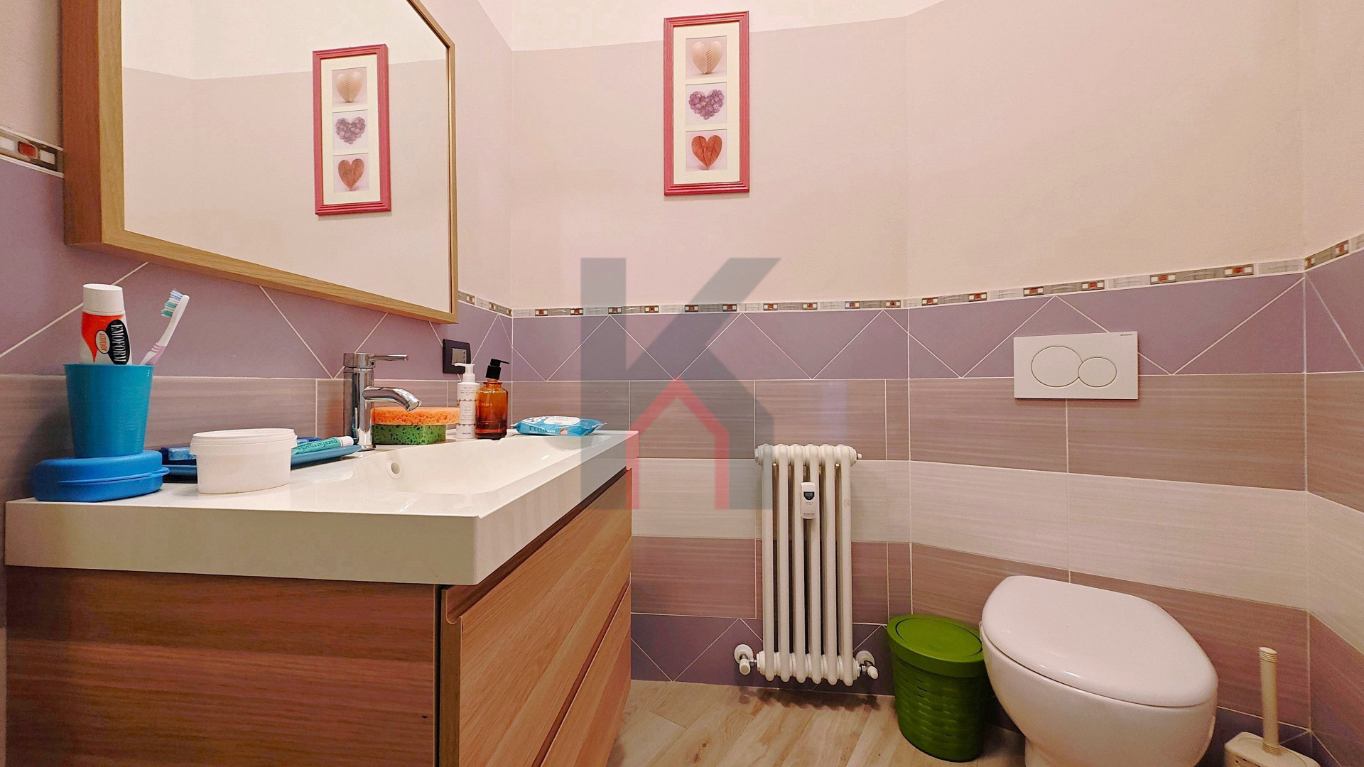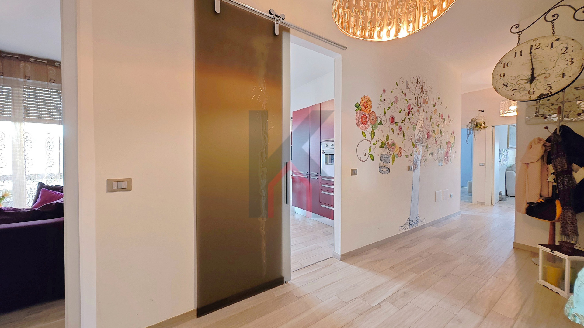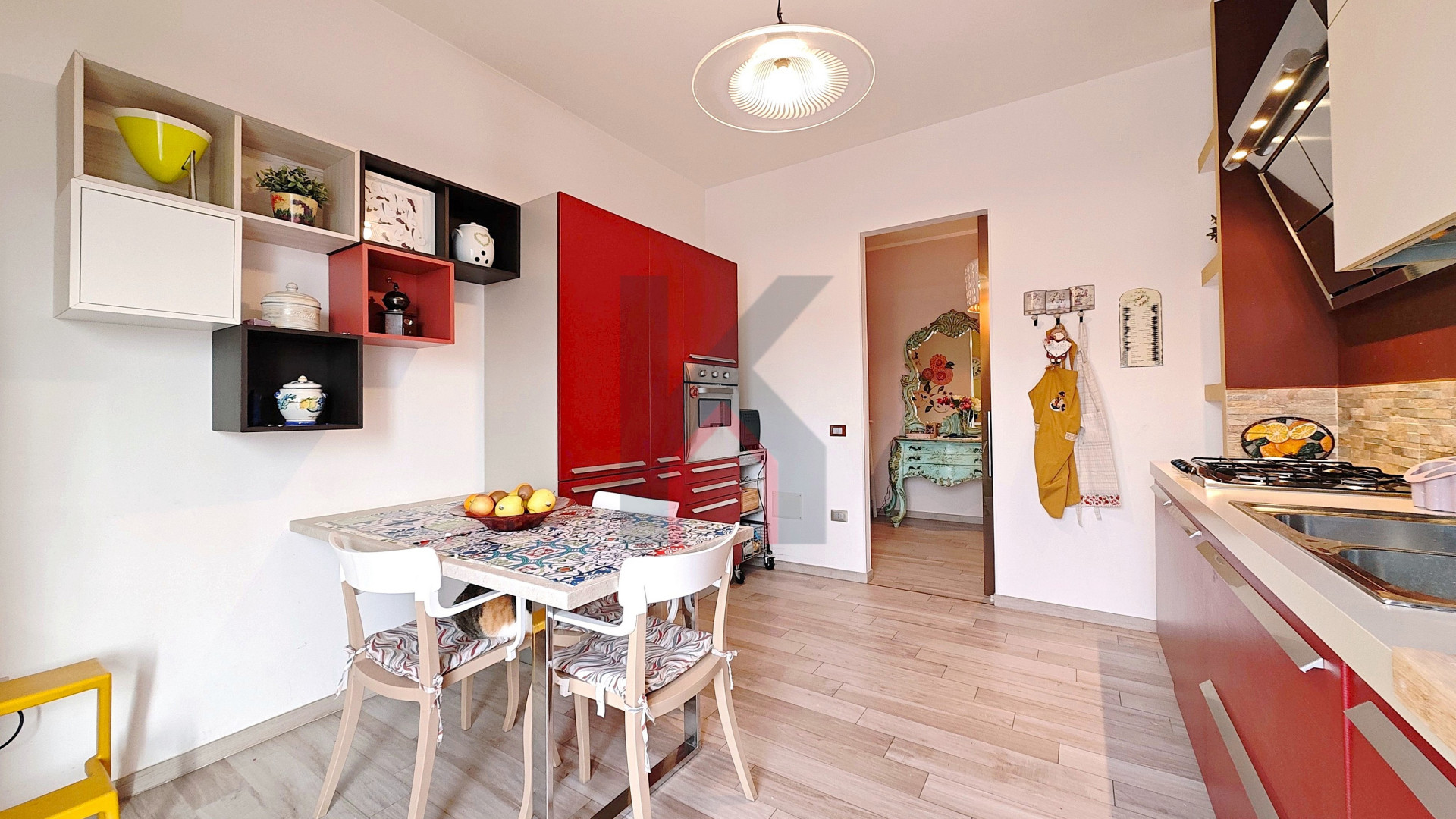 L'appartamento, ristrutturato nel 2015, si sviluppa lungo il corridoio che costeggia e serve le varie camere partendo da un soggiorno da 20 mq con balcone condiviso con la cucina abitabile.