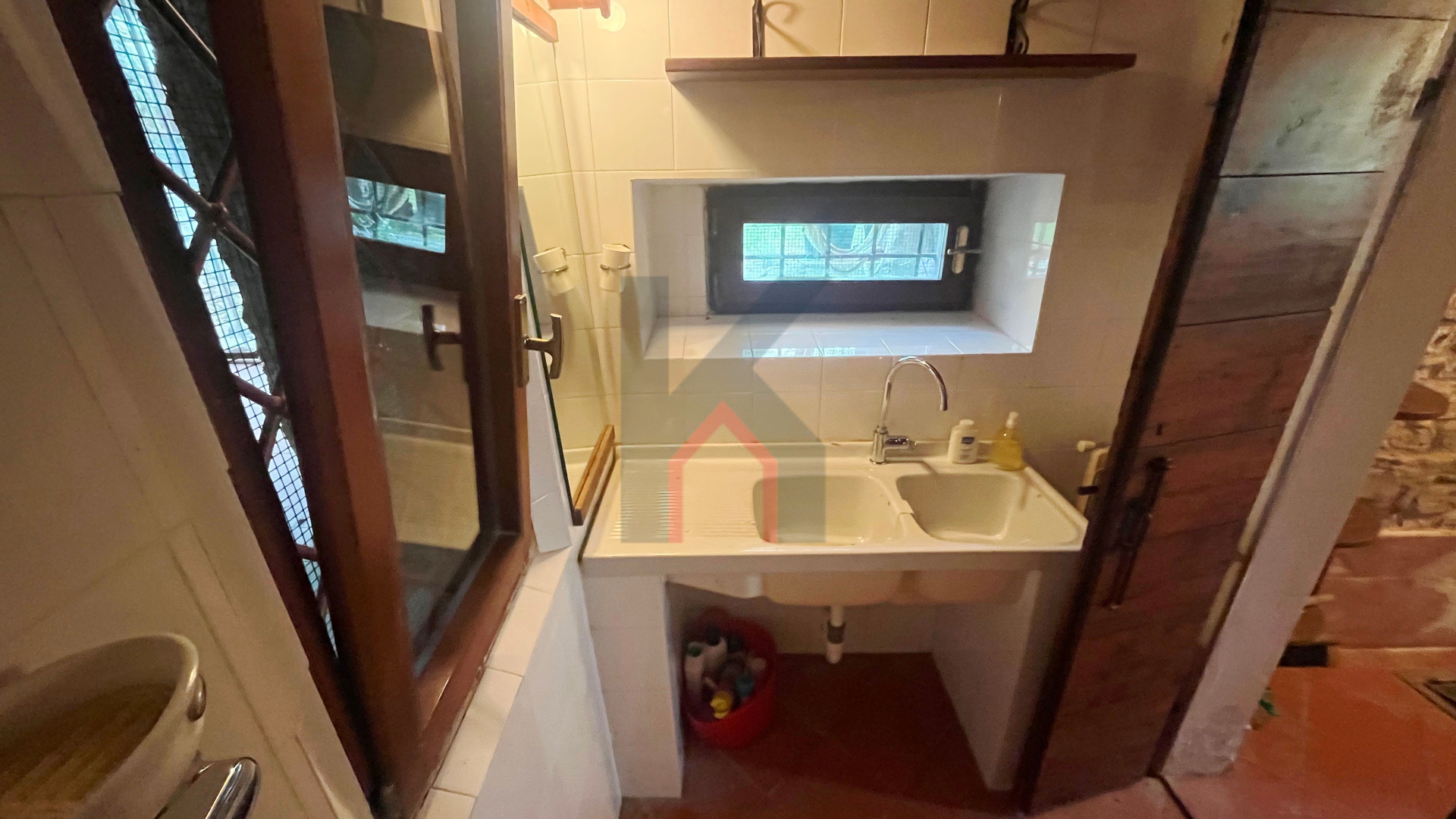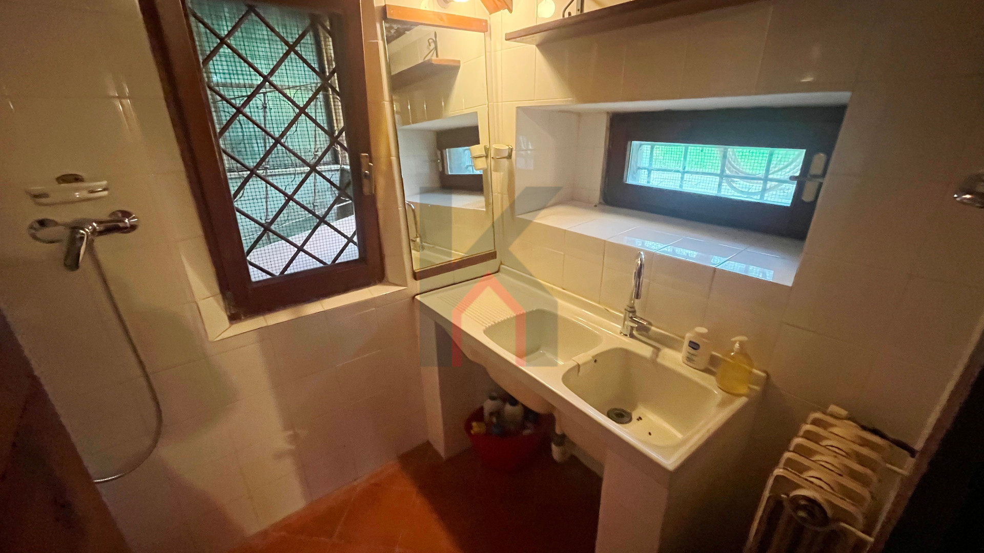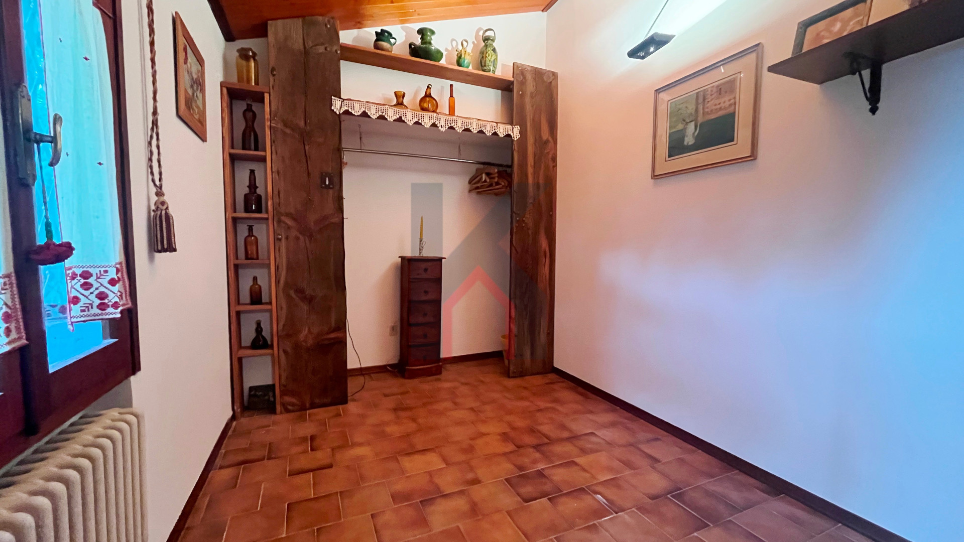 Dal disimpegno mediante scaletta si accede al sottotetto finestrato da lucernari adibito come ripostiglio.