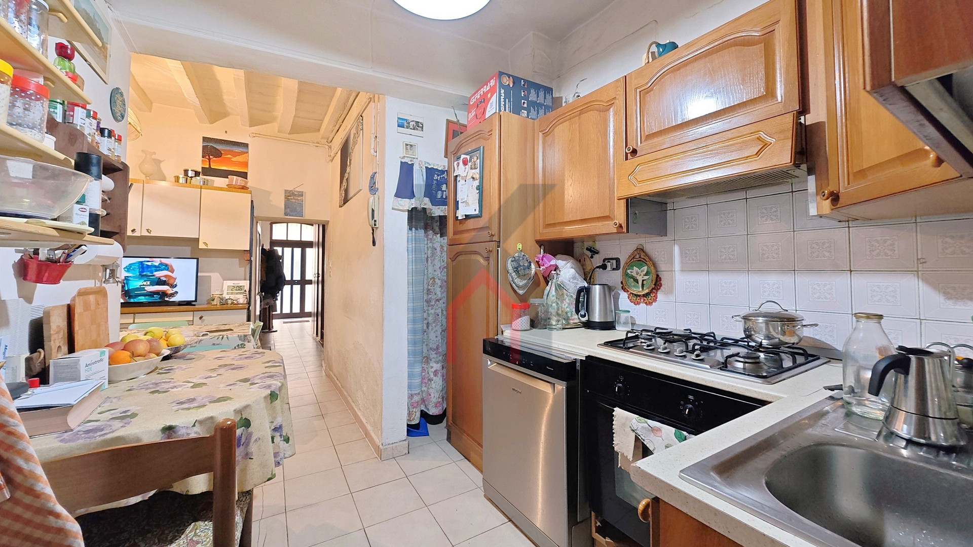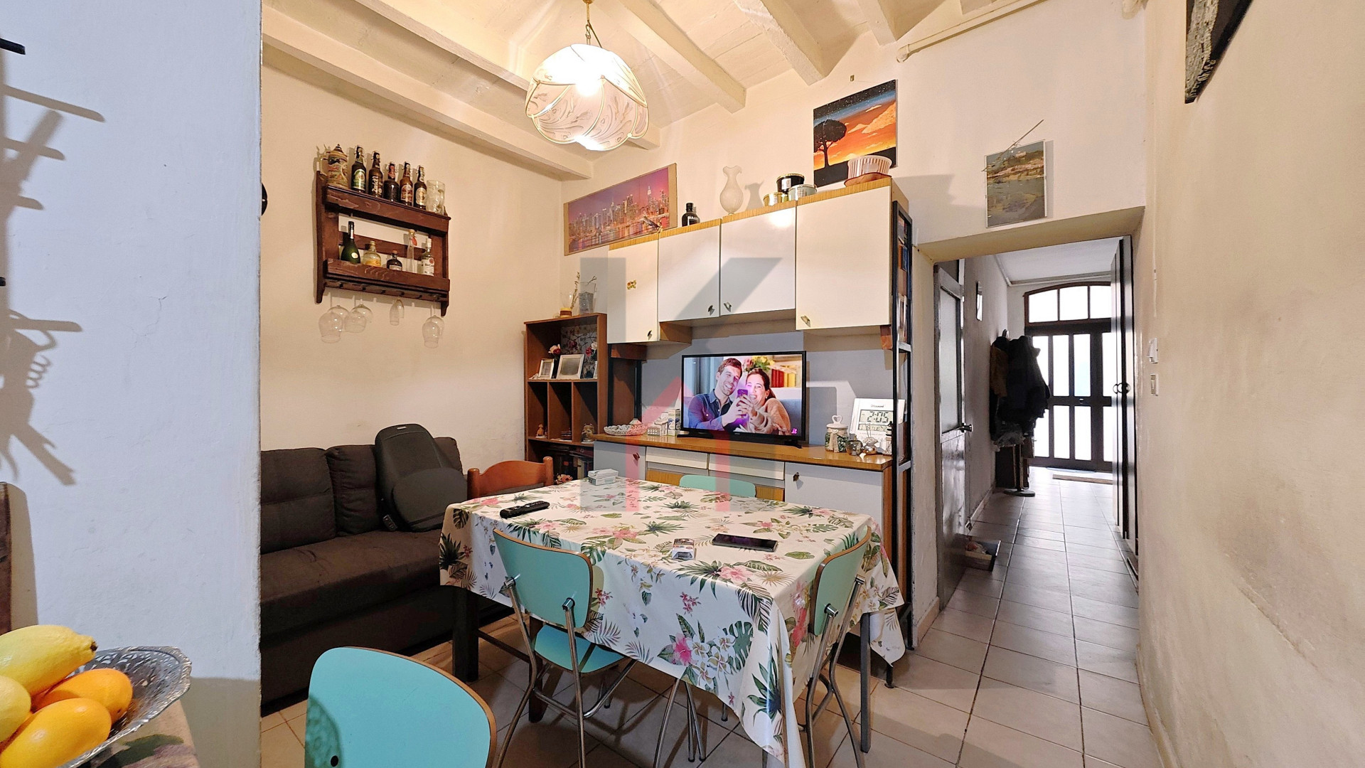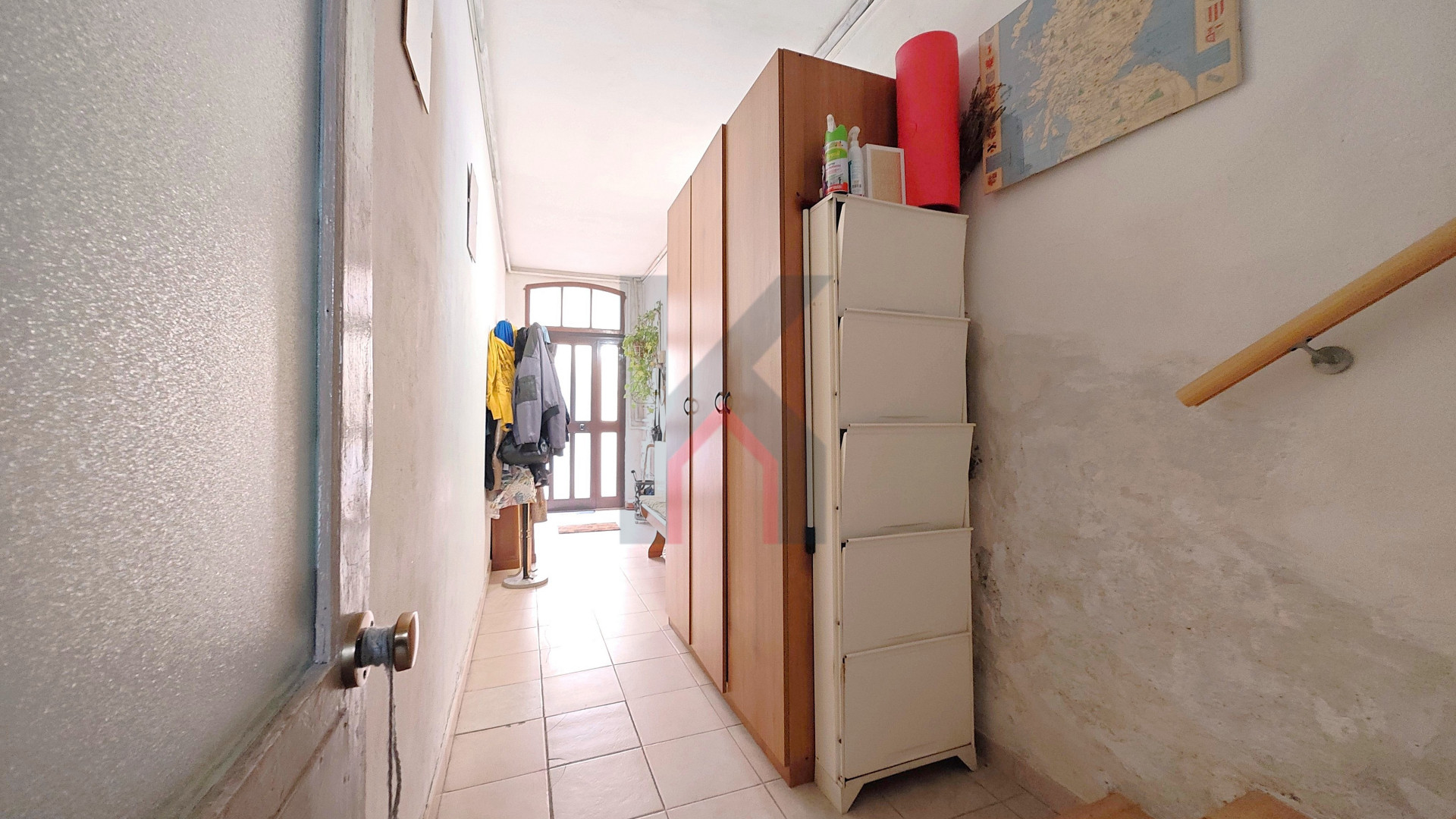 L'immobile si sviluppa con un ingresso che conduce alla zona cucina con sala da pranzo, bagno finestrato e affaccio sulla corte pavimentata interna che conduce al garage di proprietà con ingresso sulla strada parallela.