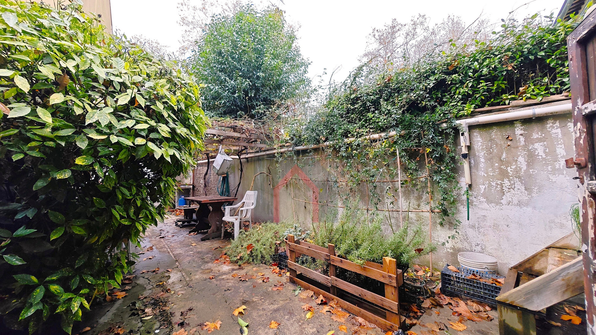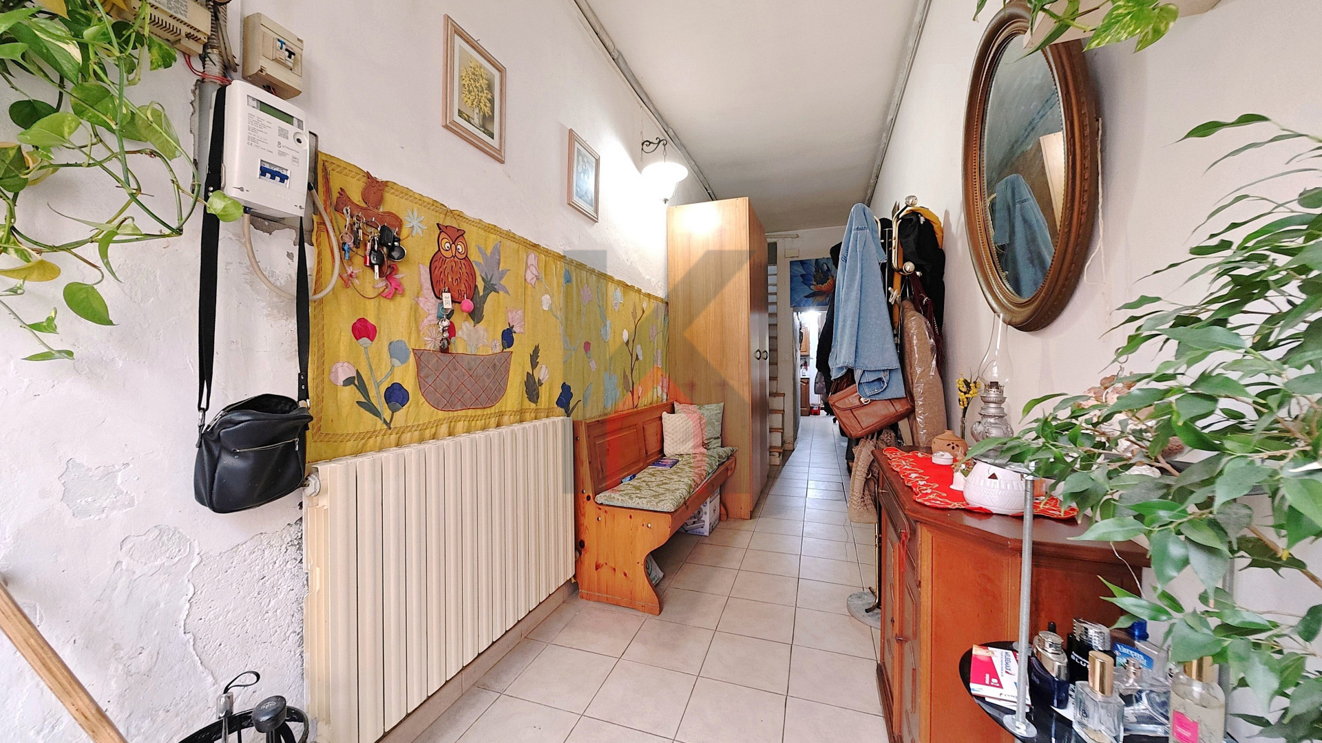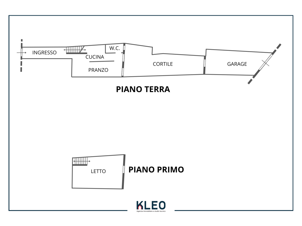 L'immobile si sviluppa con un ingresso che conduce alla zona cucina con sala da pranzo, bagno finestrato e affaccio sulla corte pavimentata interna che conduce al garage di proprietà con ingresso sulla strada parallela.