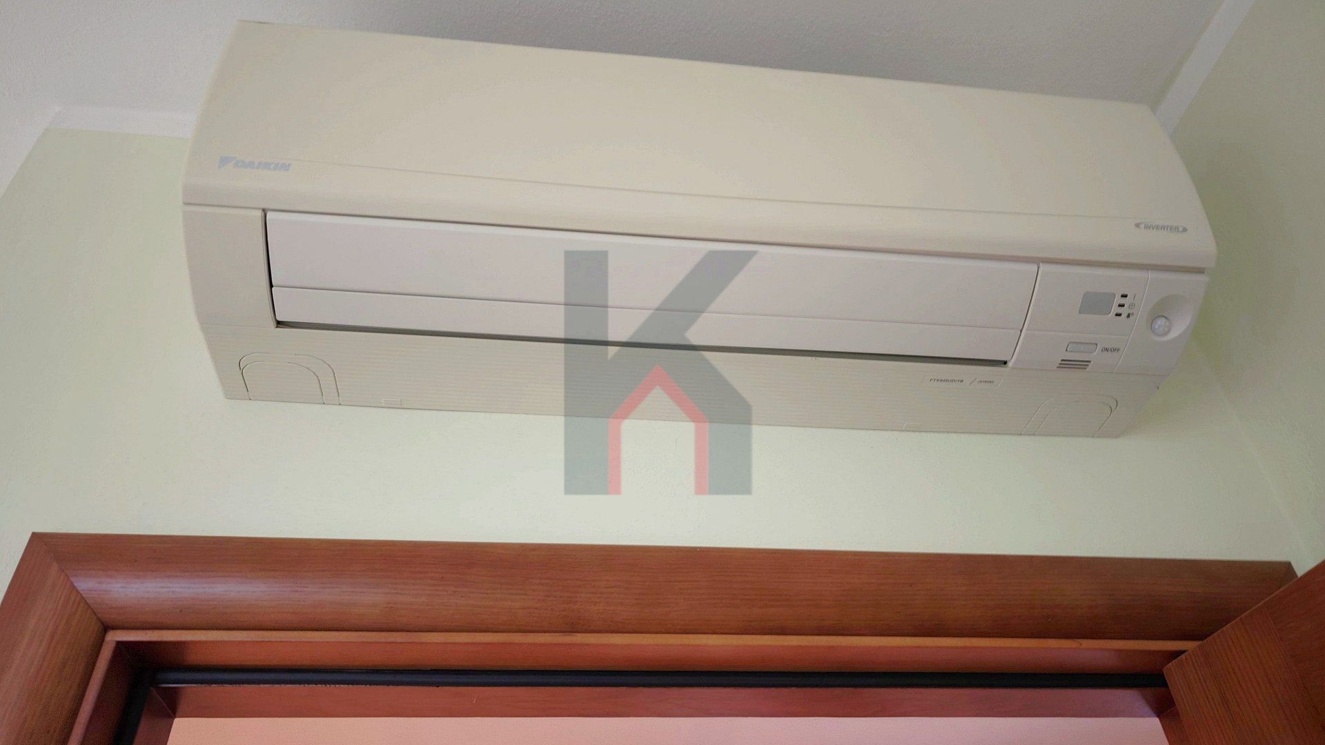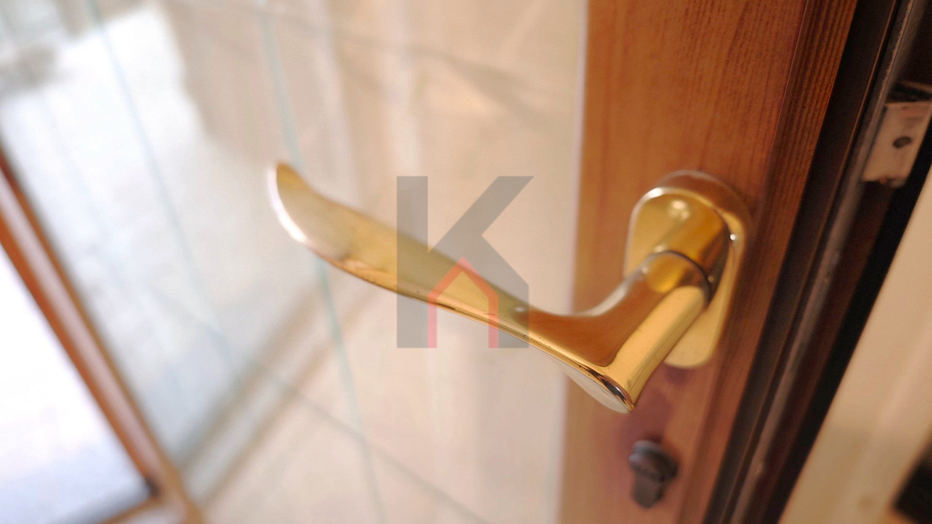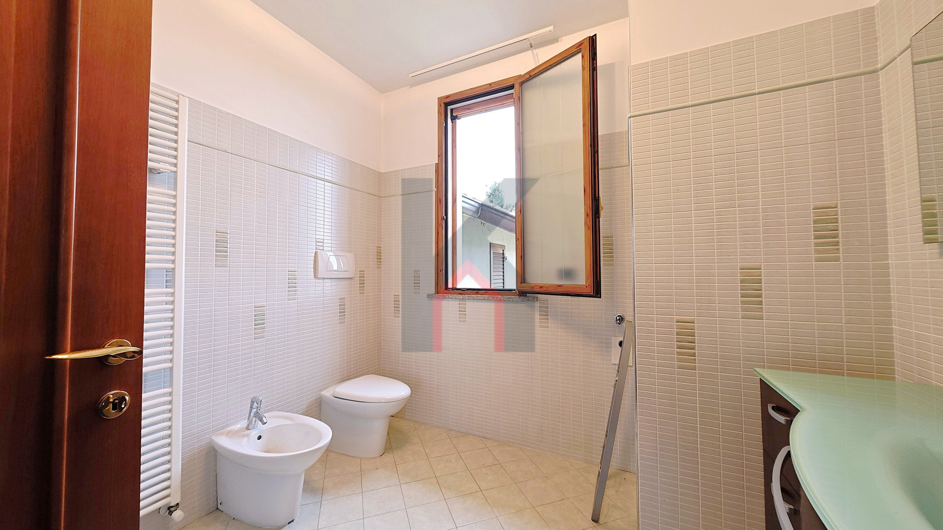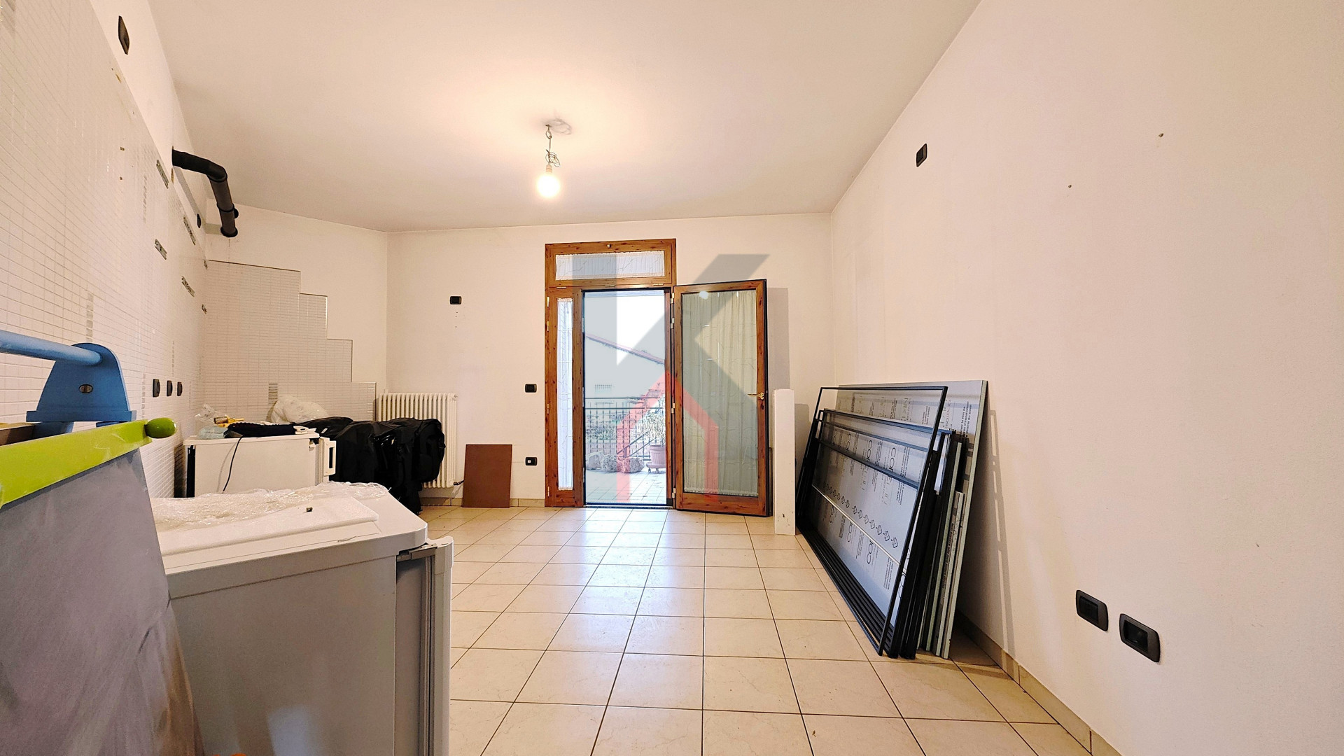 Superata la porta blindata troviamo un ampio ingresso dal quale possiamo accedere al soggiorno e alla cucina abitabile entrambi con portefinestre che danno sul portico e al primo bagno finestrato con box doccia.