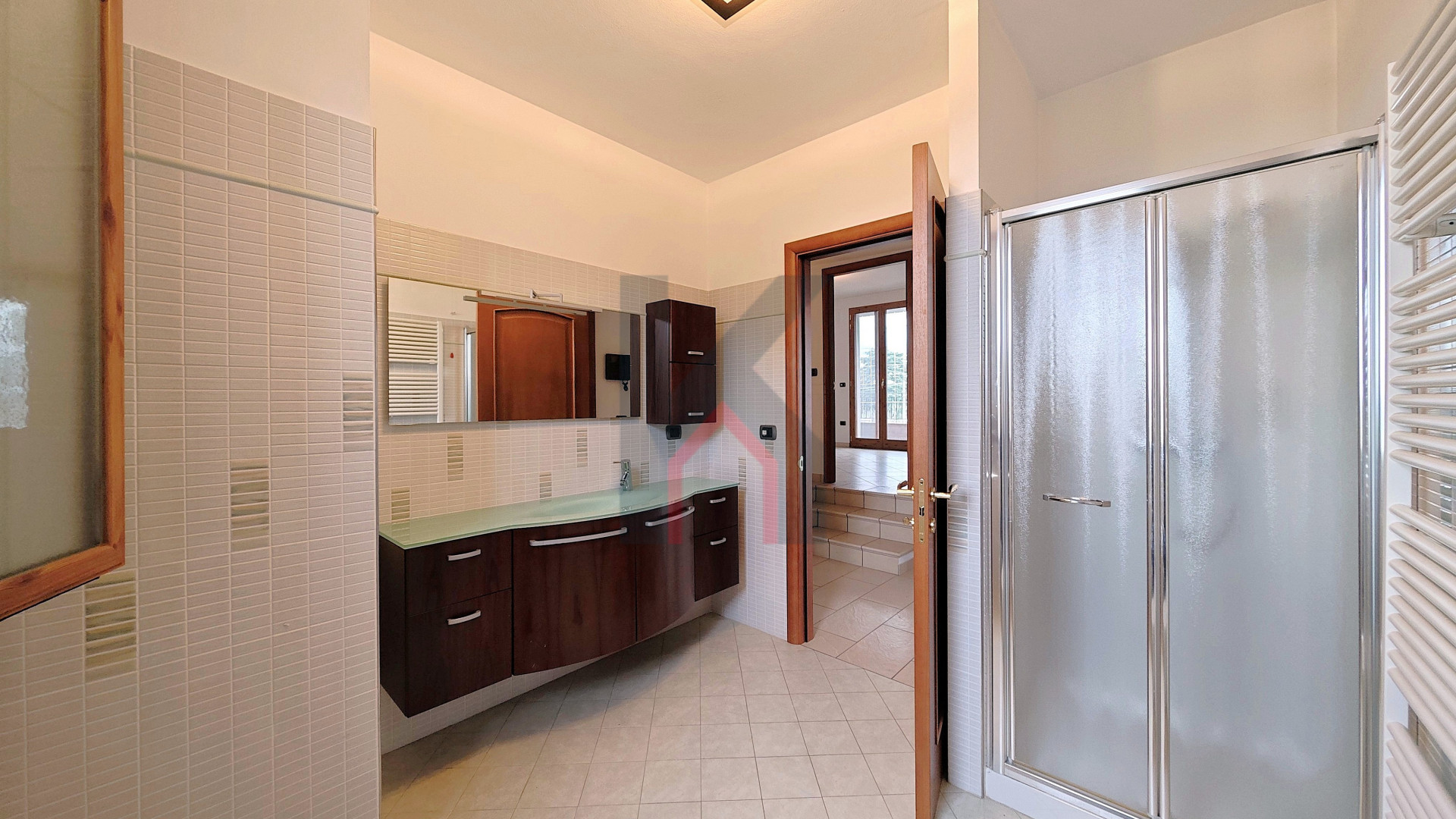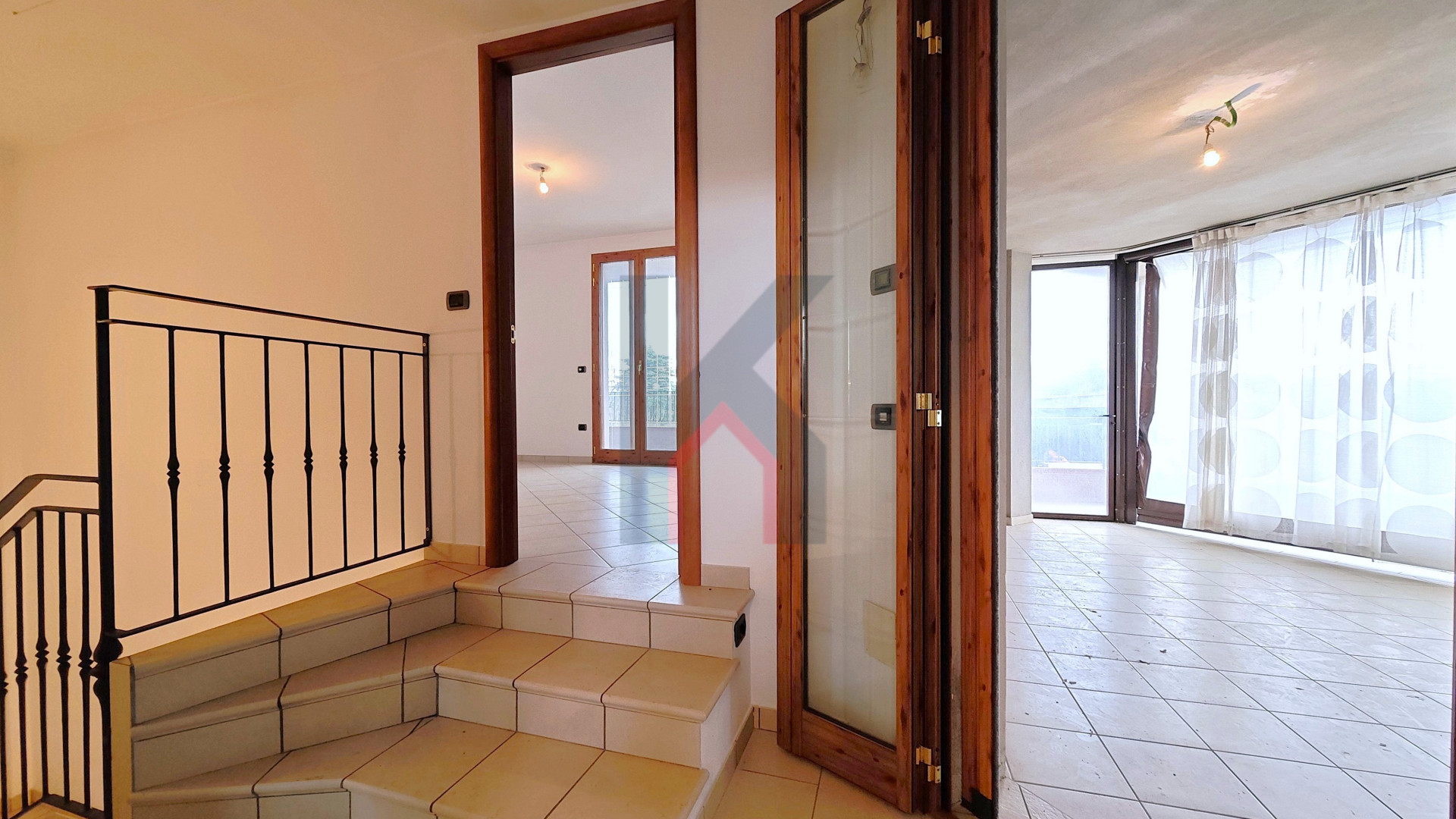 Salendo al primo piano raggiungiamo la zona notte con una camera da letto matrimoniale con affaccio sul terrazzo, una singola, un secondo bagno finestrato con box doccia, un'ampia loggia che dà sul terrazzo.