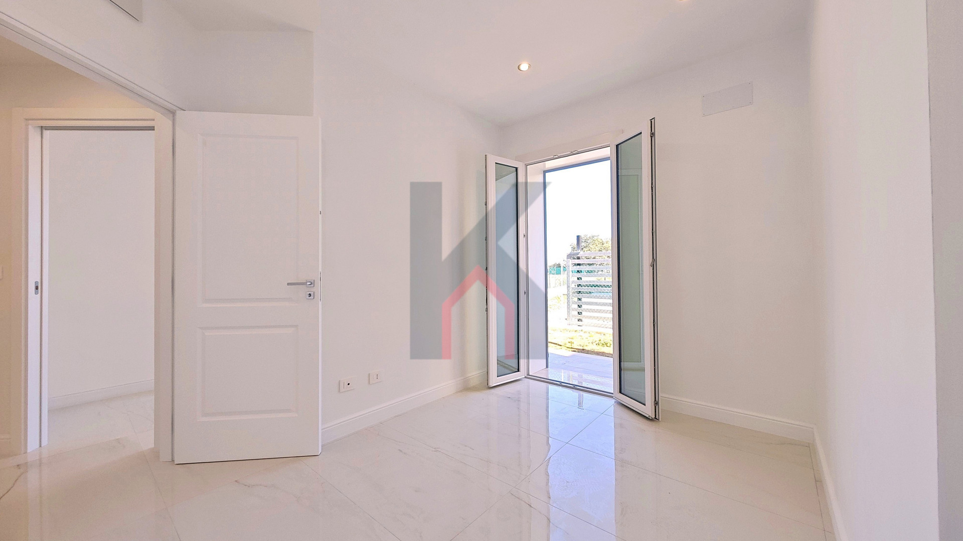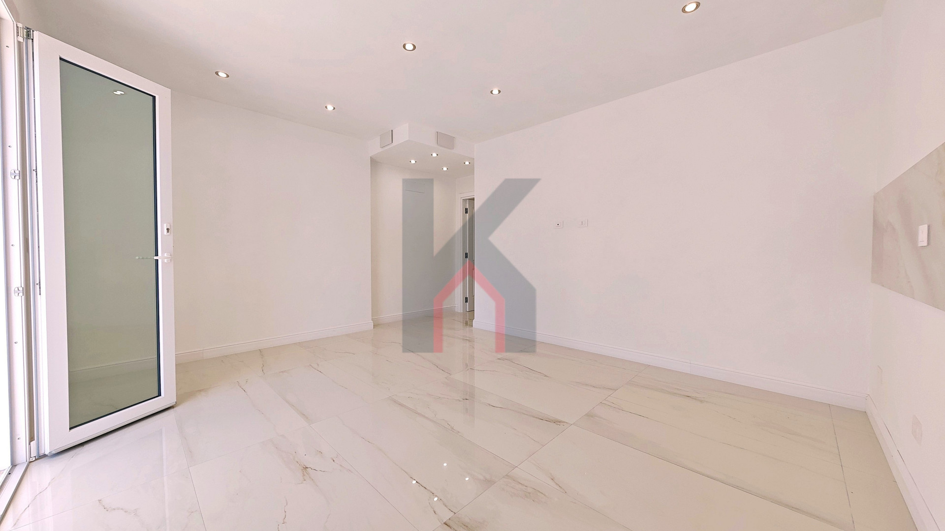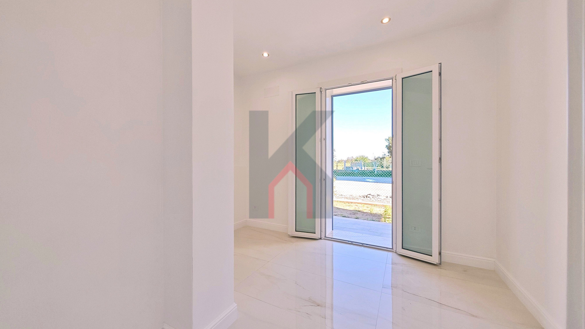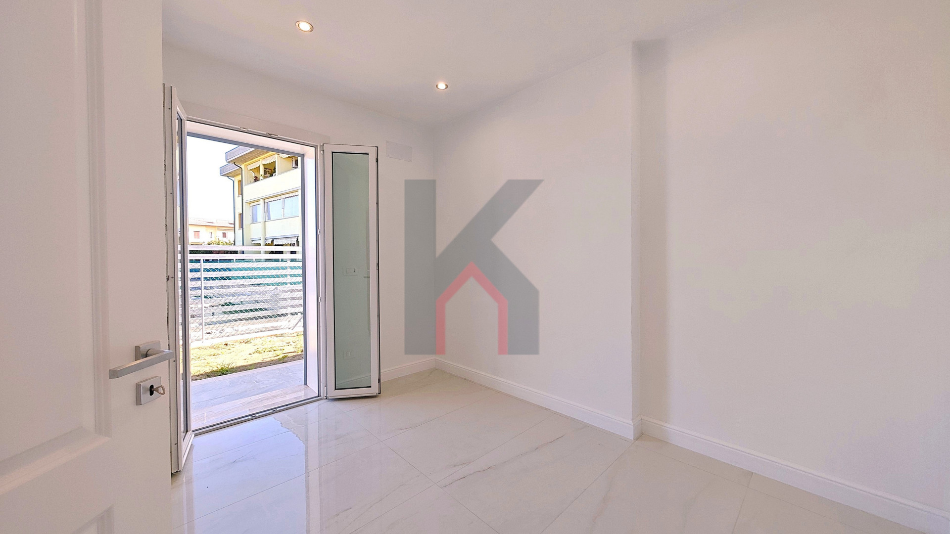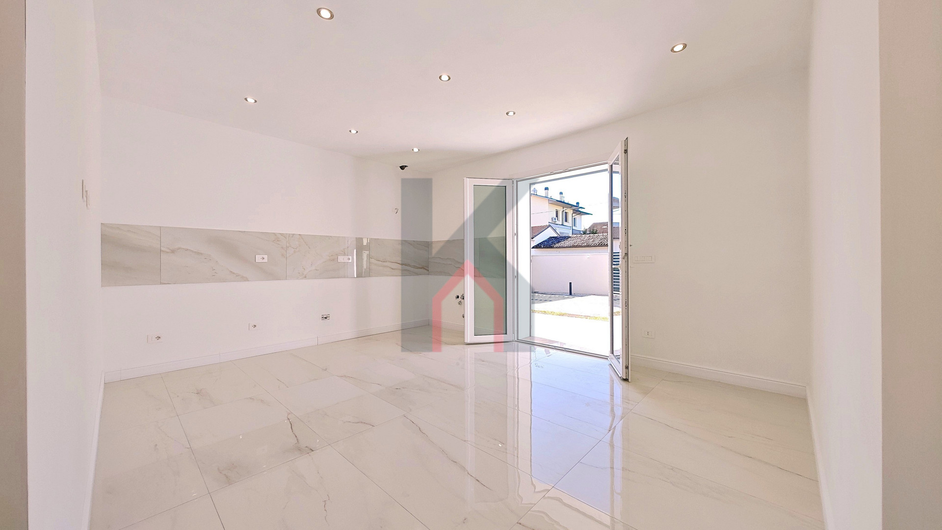 L'ingresso è tramite portafinestra blindata che dà sul soggiorno con angolo cottura predisposto per la cucina ad induzione;