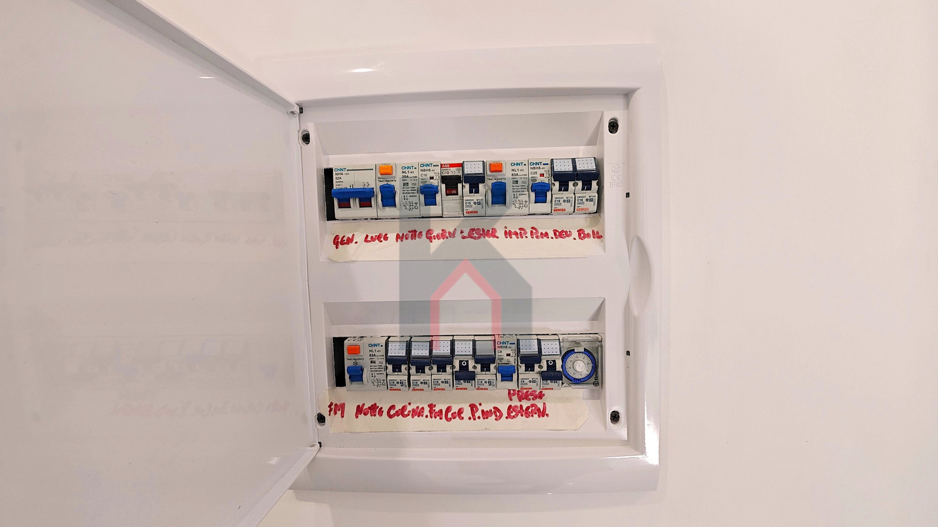 Cappotto esterno da 15 cm, riscaldamento a pavimento con controllo per singola camera, raffrescamento e ricircolo tramite VMC (Ventilazione Meccanica Controllata), infissi in doppio vetro e pvc con controtelaio in legno e isolante per una migliore coibentazione, persiane in alluminio, tetto con coibentazione di 15 cm, massetto, guaina liquida, carta catramata e guaina, pompa di calore con accumulo per il sistema di riscaldamento e acqua sanitaria tramite boiler elettrico Ariston da 150 litri, sistema di videocitofono a colori con 2 telecamere, Mapeband lungo le zone perimetrali per impermeabilizzazione, camminamenti perimetrali in cemento armato, fossa settica Imhoff che supporta fino a 10 persone.