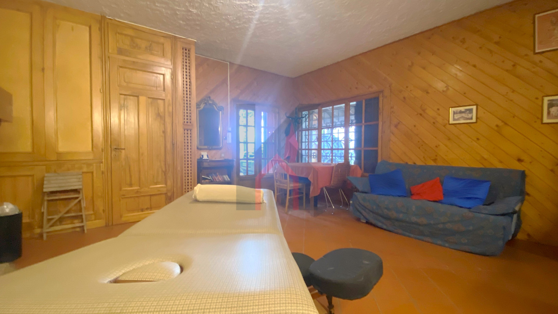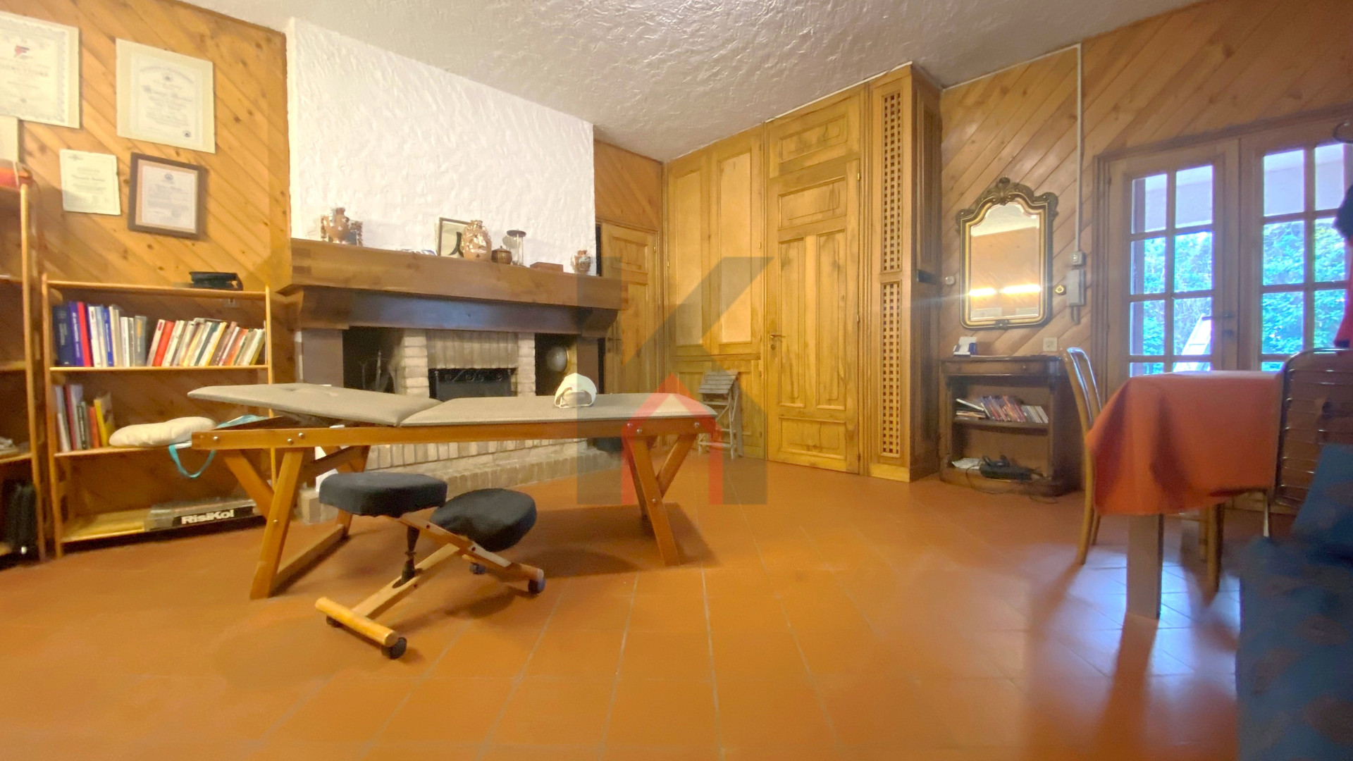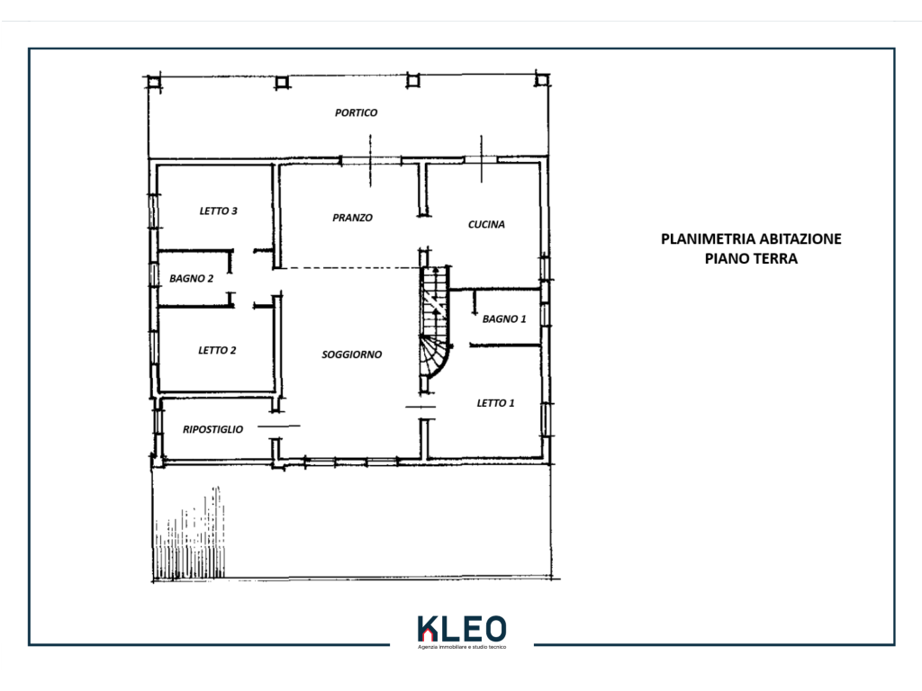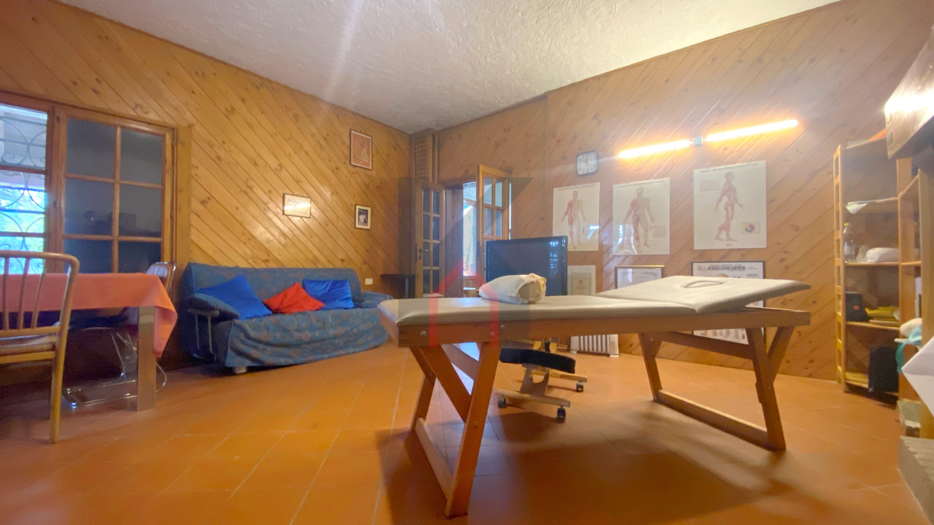 si accede all'abitazione tramite ampio portico chiuso con vetrate e sfruttabile tutto l'anno, ingresso sulla zona pranzo / soggiorno impreziosita da grande camino circolare a centro stanza, cucina abitabile con ulteriore camino in muratura.