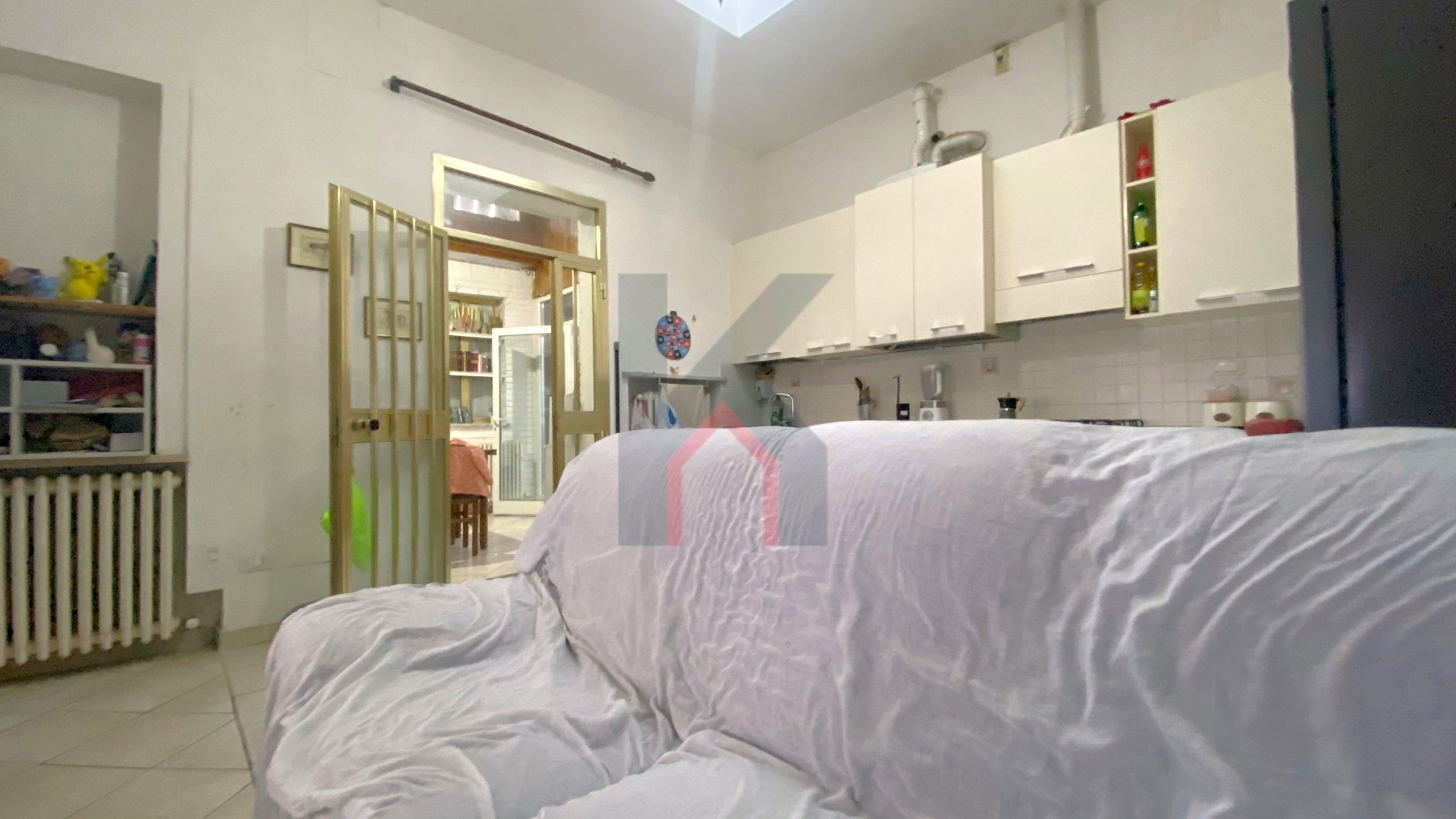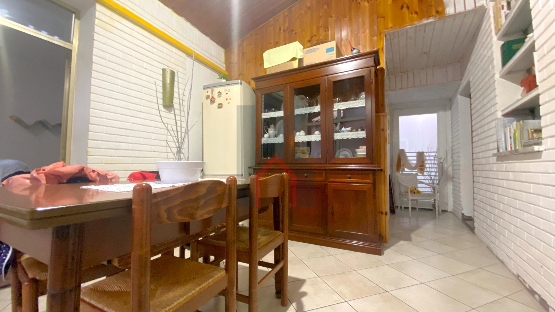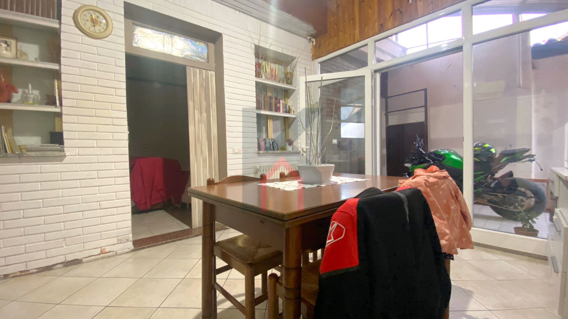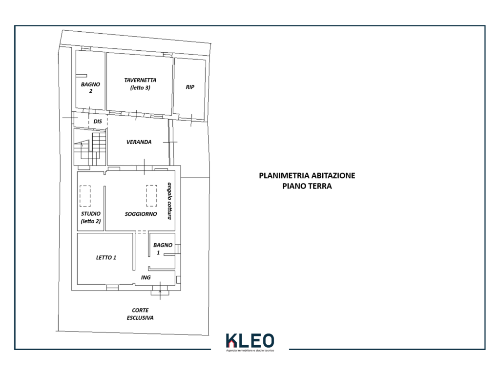 Così disposta: ingresso tramite veranda al momento adibita a sala da pranzo, soggiorno con angolo cottura, studio di circa 8,50 mq,