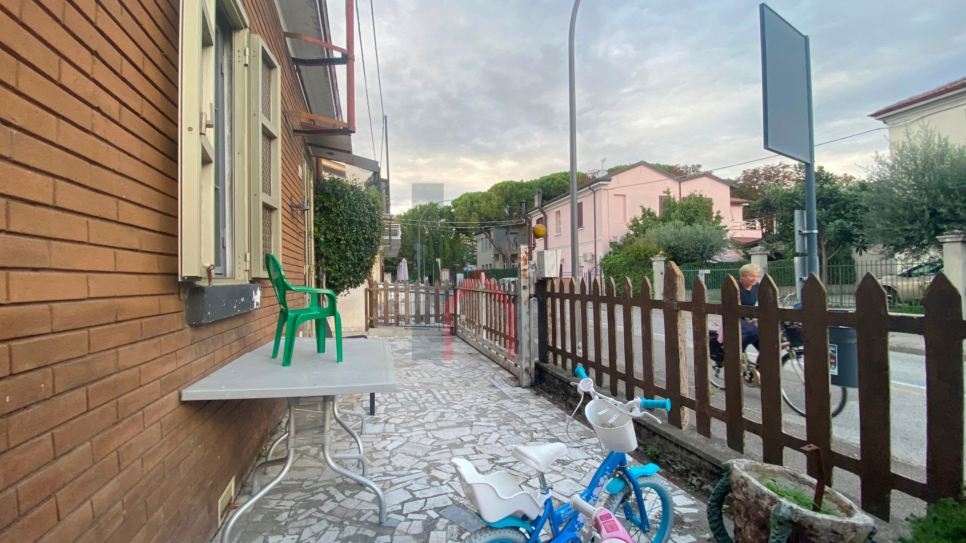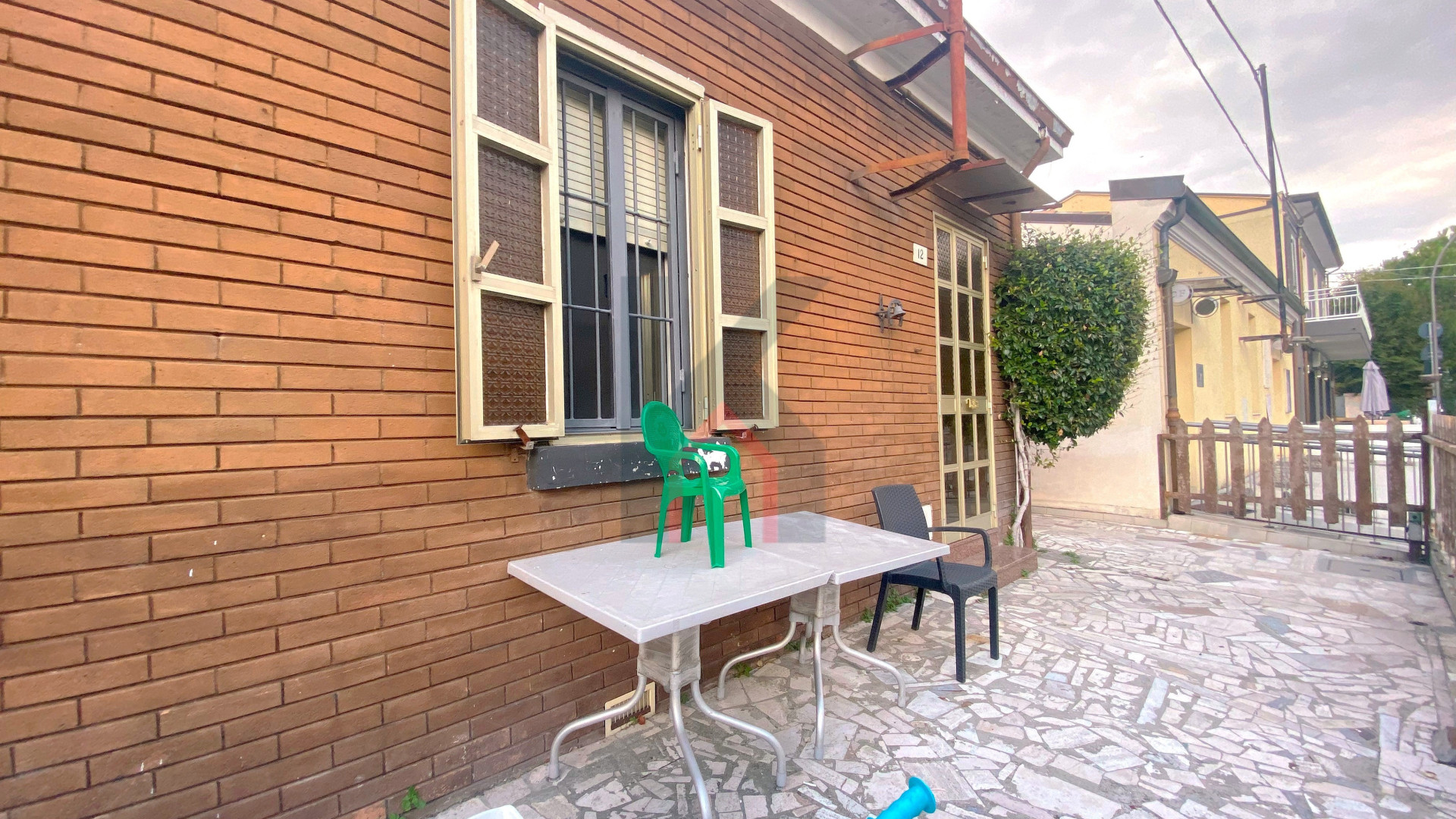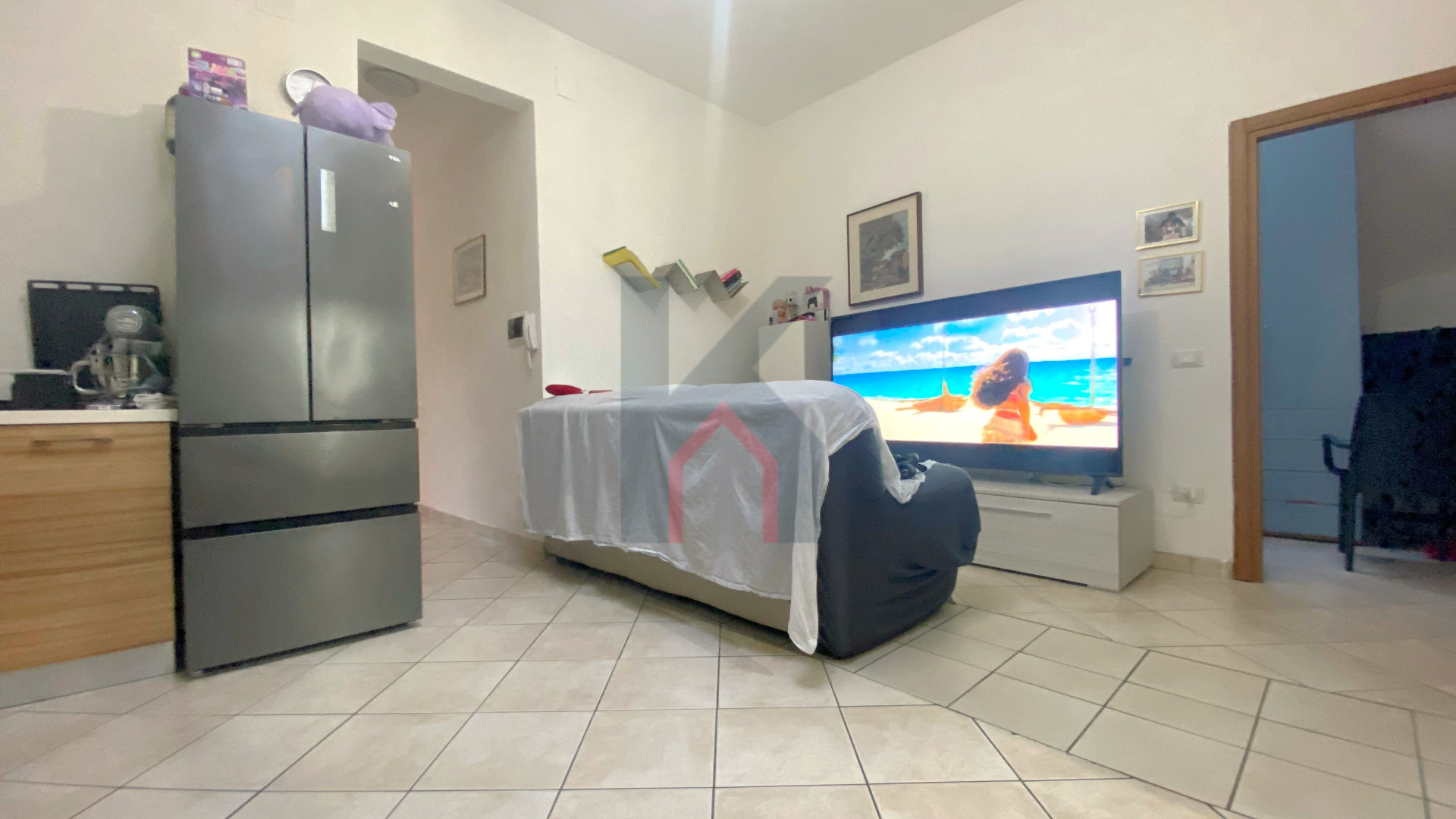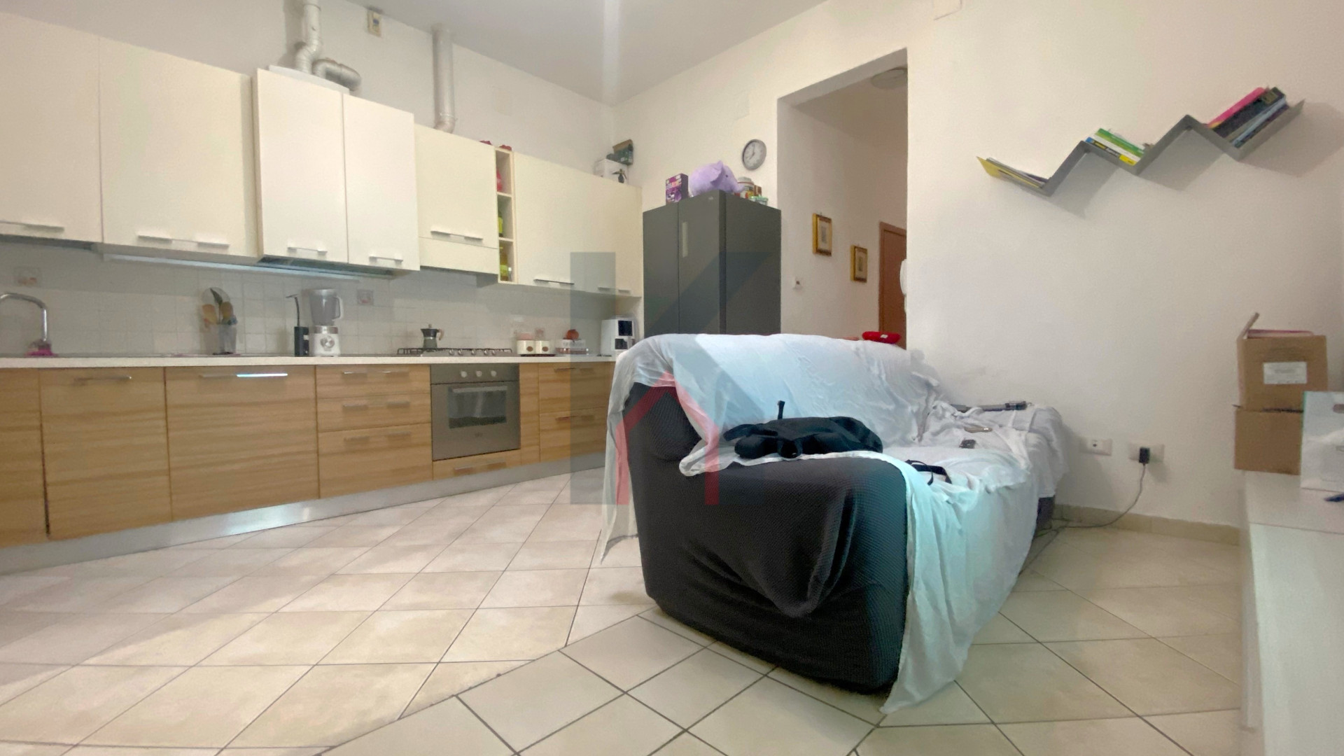 Così disposta: ingresso tramite veranda al momento adibita a sala da pranzo, soggiorno con angolo cottura, studio di circa 8,50 mq,