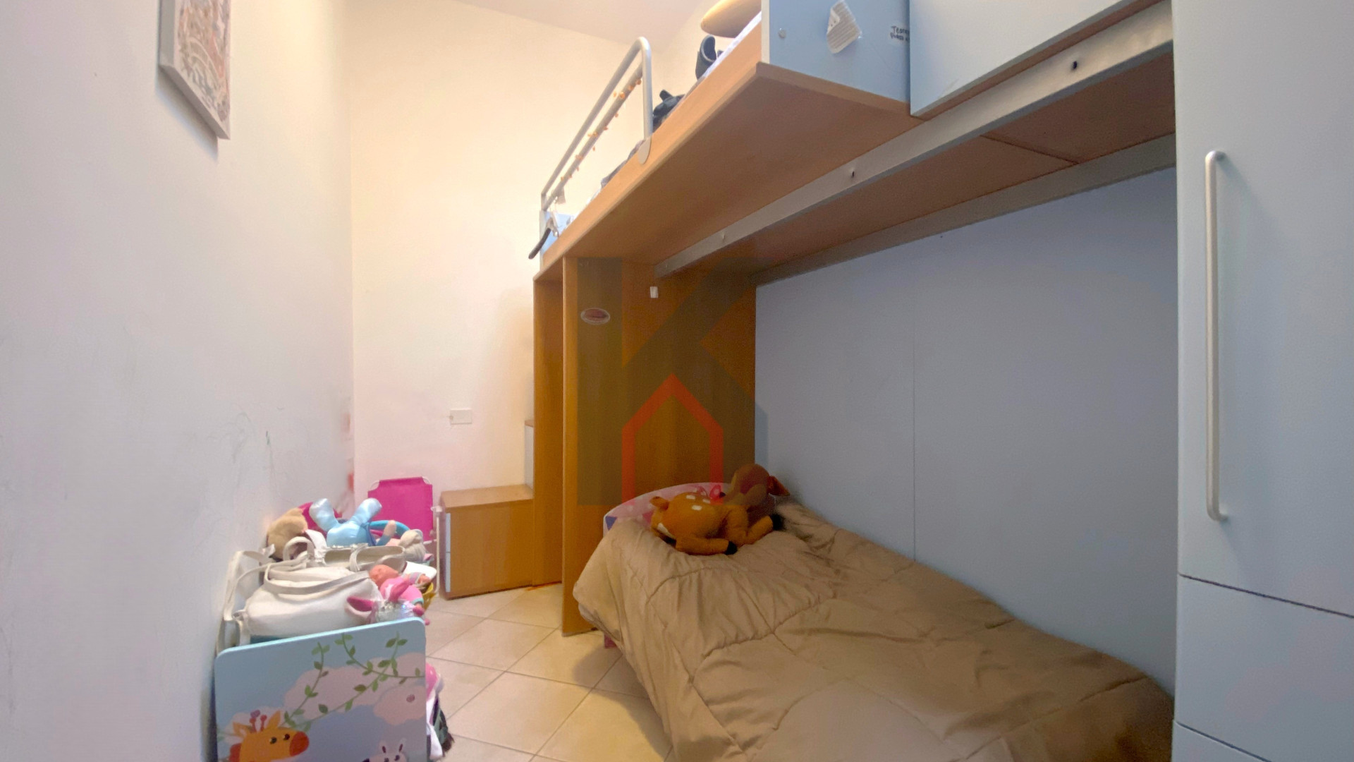 disimpegno notte, camera matrimoniale, bagno finestrato con box doccia.