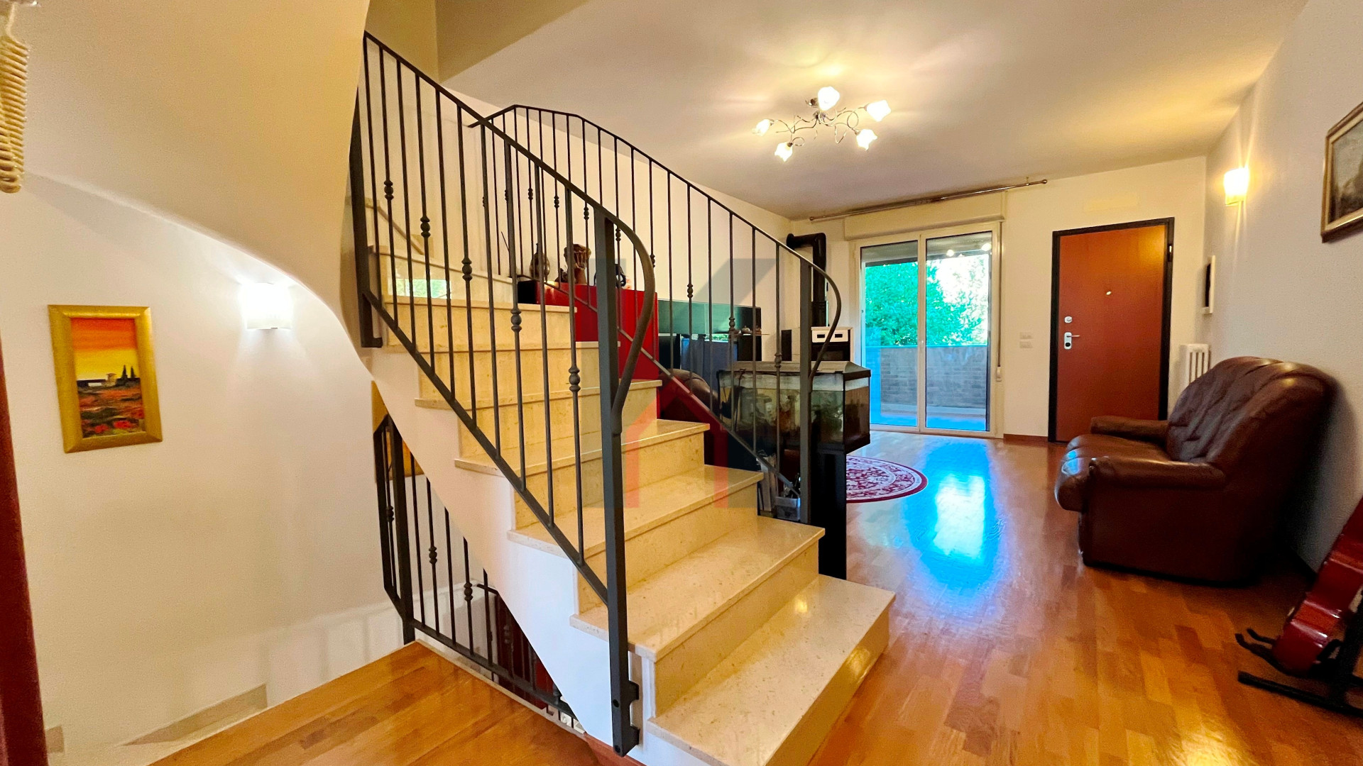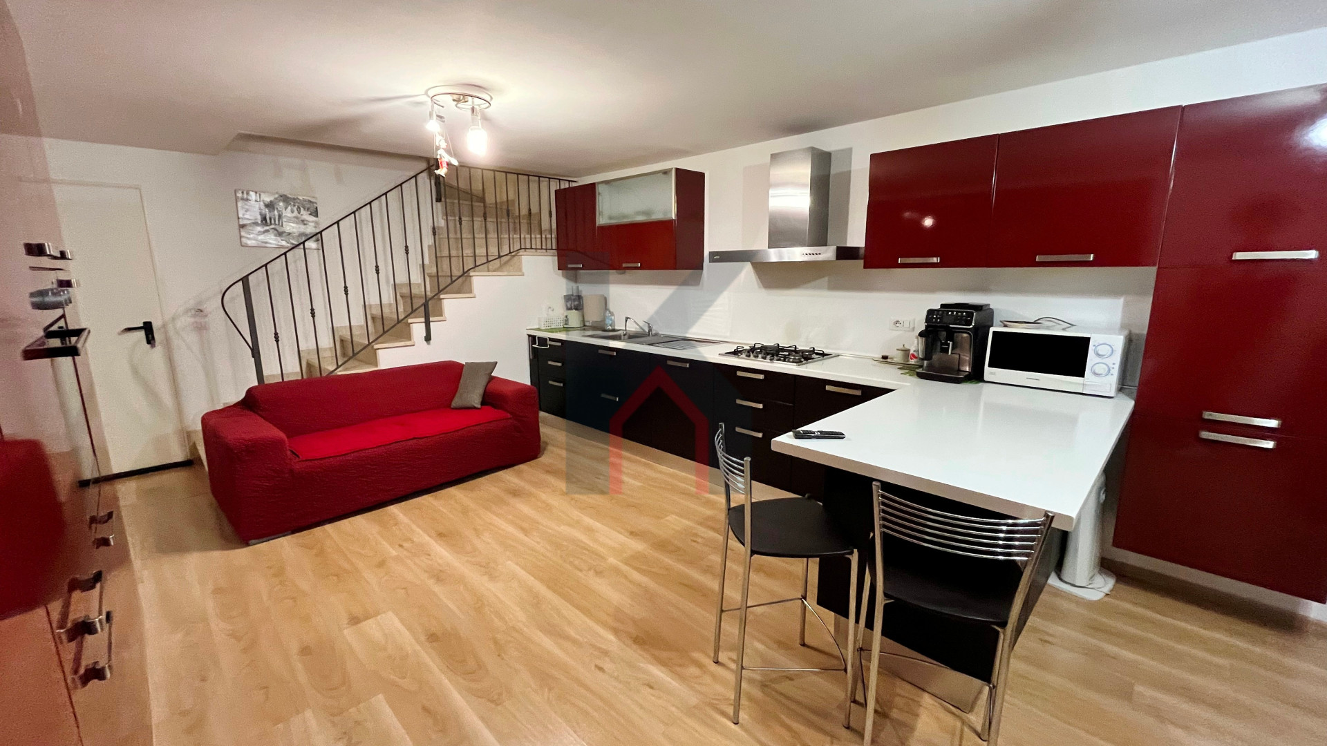 Disposta su più livelli si presenta in ottimo stato ed è composta al piano terra rialzato dal soggiorno con accesso al terrazzino abitabile, disimpegno, cucina abitabile attualmente adibita come ampia cabina armadio e con accesso al secondo terrazzo, bagno finestrato con box doccia.