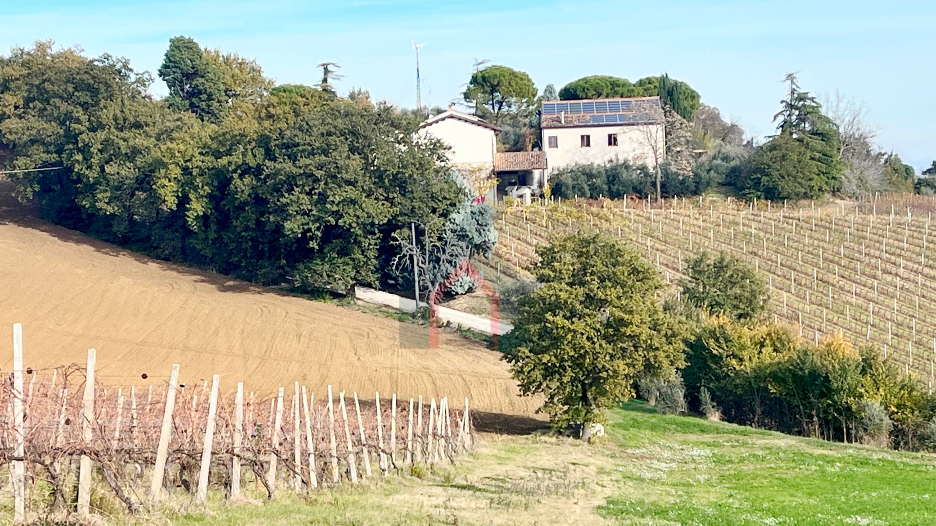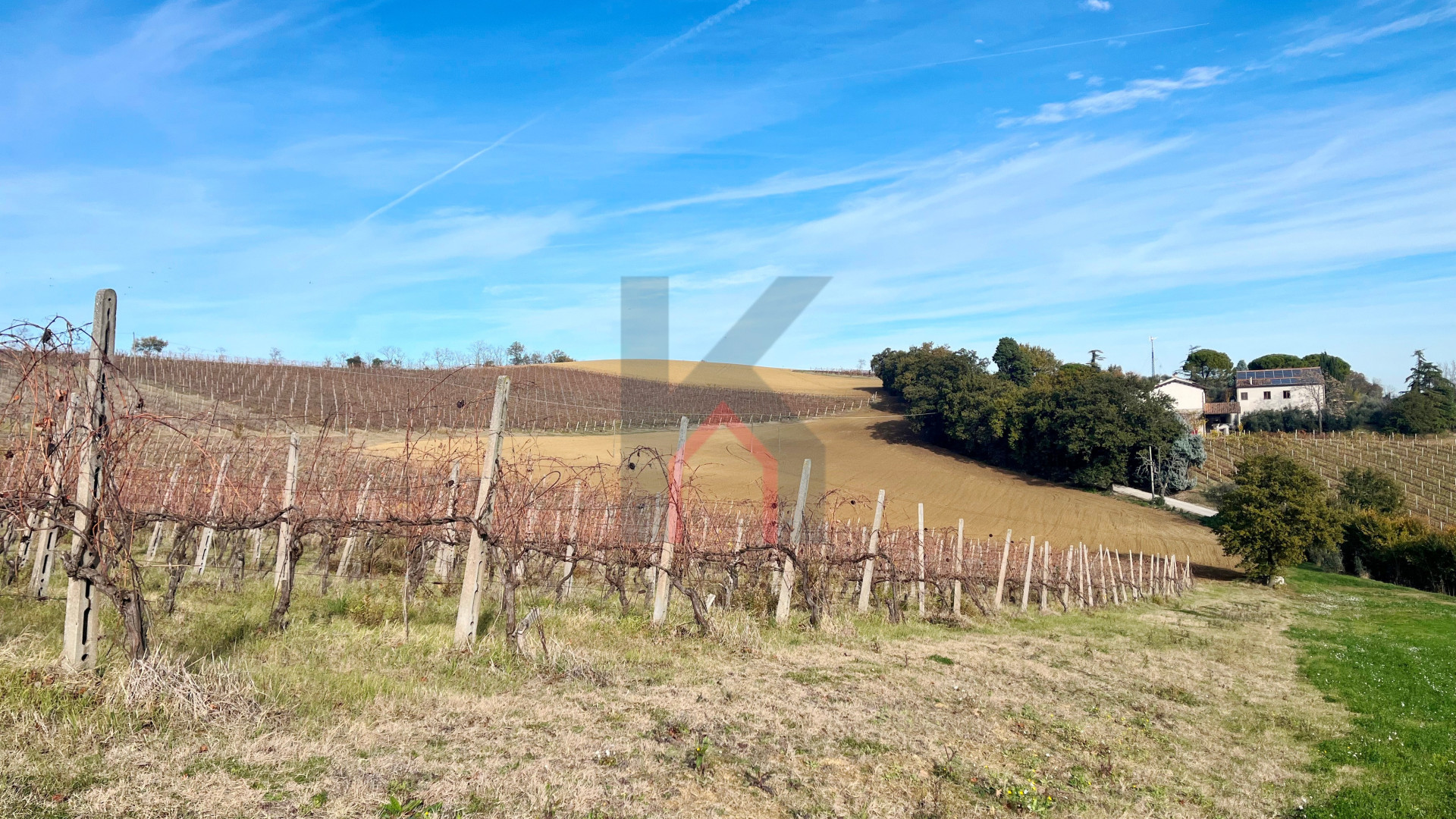 Il terreno ha 2 diverse culture di cui una di circa 11.000 mq coltivata a vigna per la produzione di vino Trebbiano e Sangiovese,